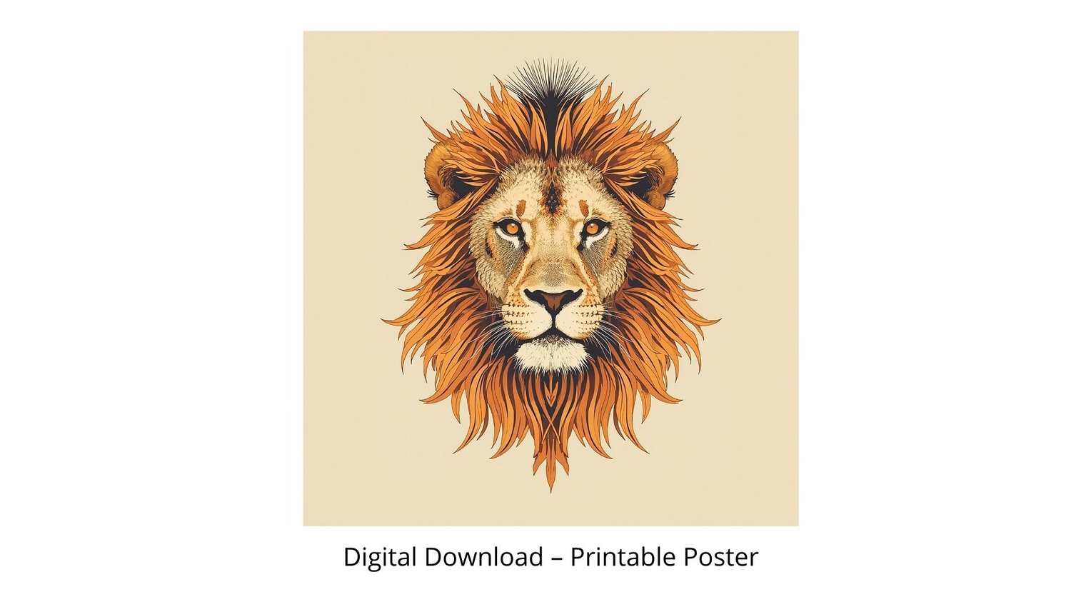 Lion Portrait Wall Art Printable – Elegant Wildlife Poster