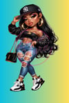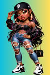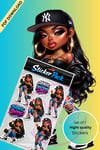 Each sticker is designed with vibrant color, detailed artwork, and a standout urban glam aesthetic that looks amazing on your favorite everyday items. From the iconic cap and hoops to the ripped denim and sneaker style, this set is perfect for anyone who loves edgy fashion, bold beauty, and boss-babe vibes.