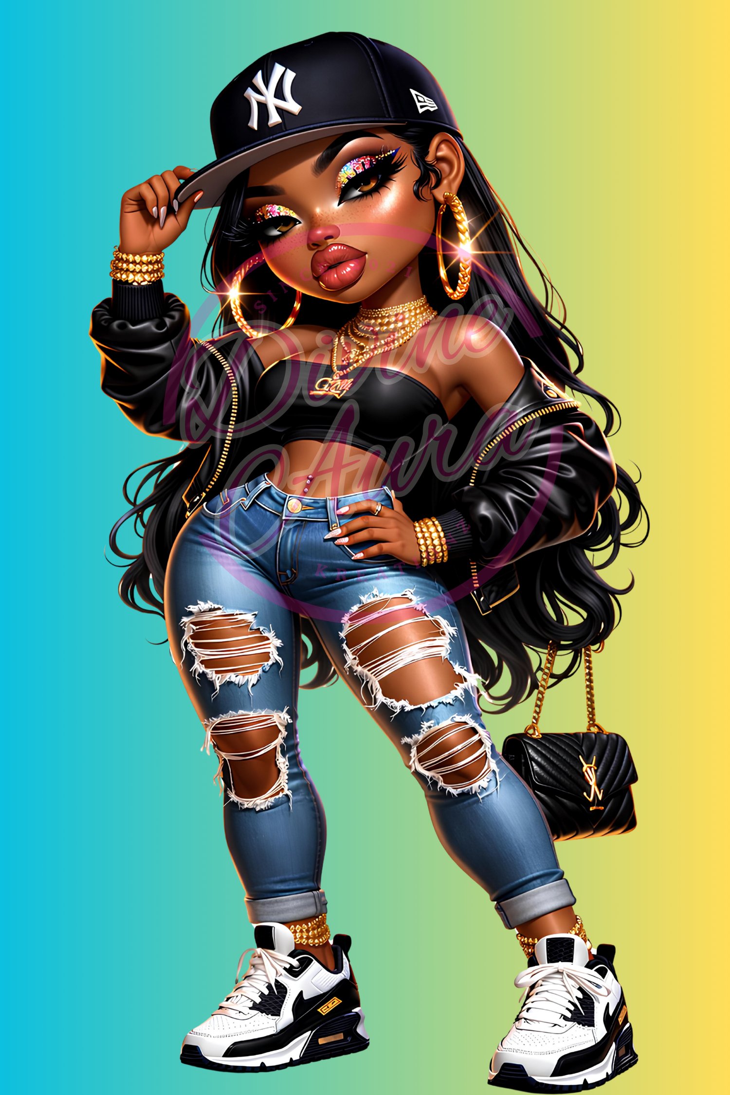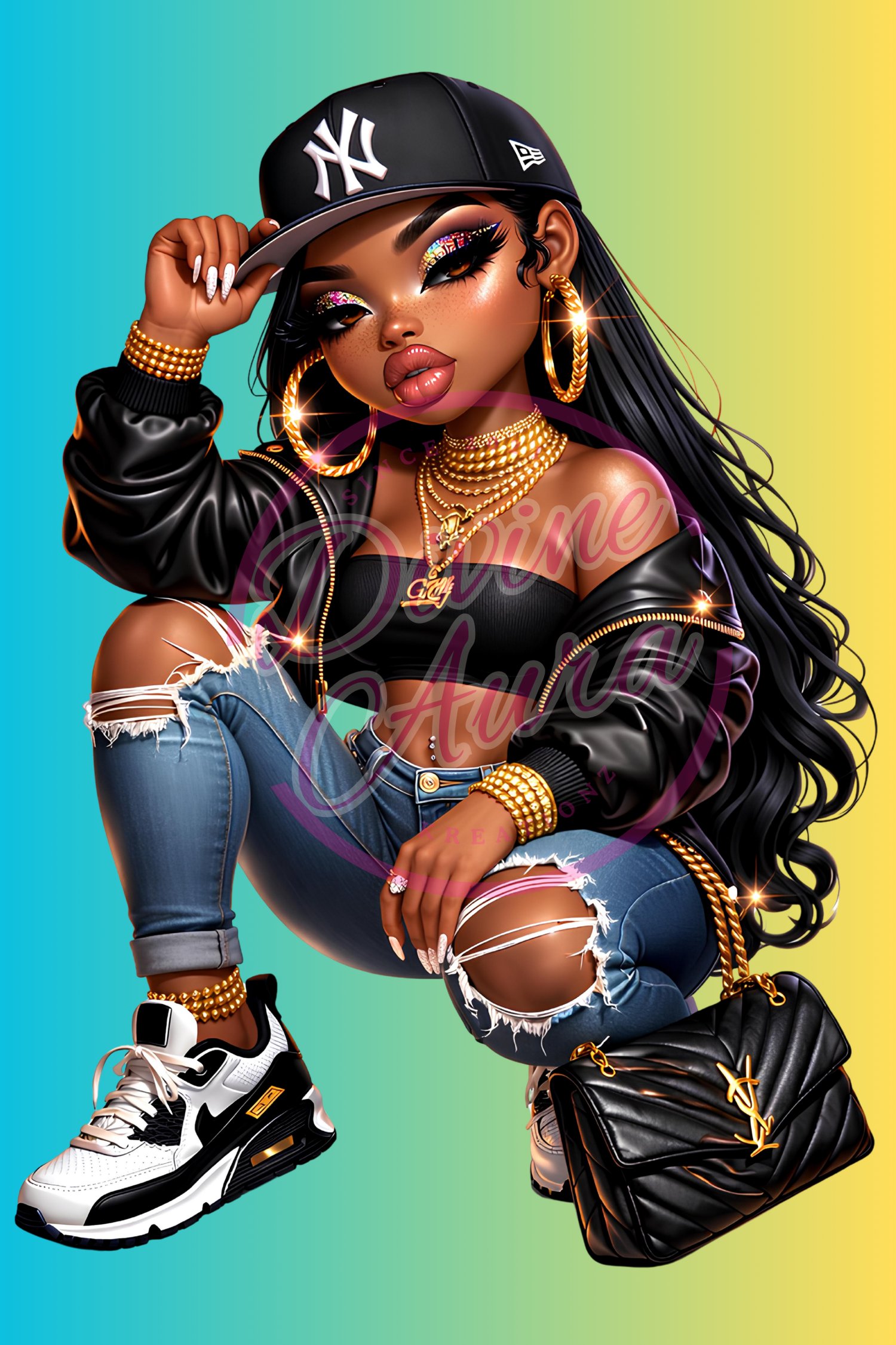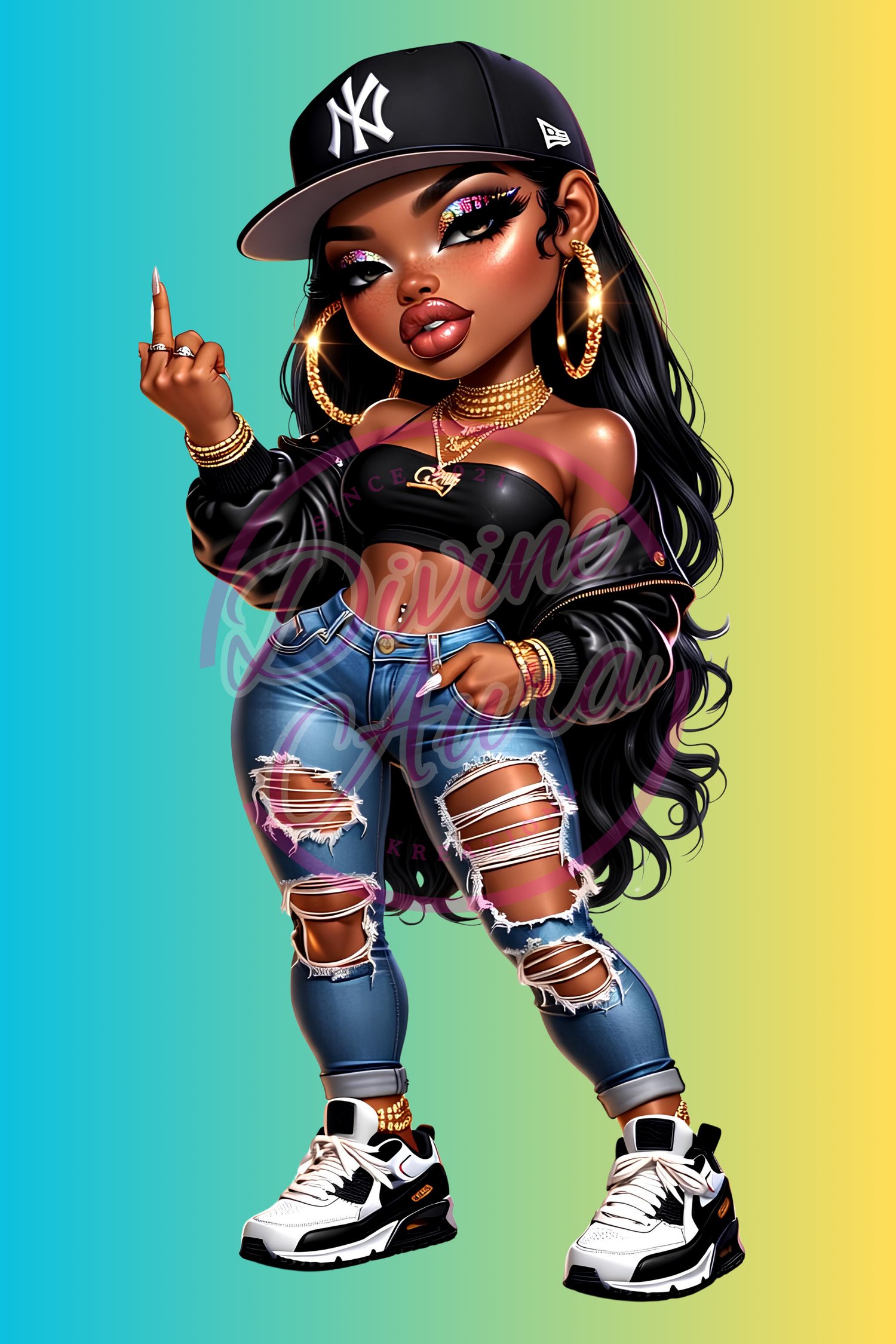 Bring bold Bronx energy and street-style glam to your collection with this set of 7 high-quality stickers. This stylish sticker pack features a fierce fashion-forward baddie inspired by New York attitude, confidence, and city-girl flair.