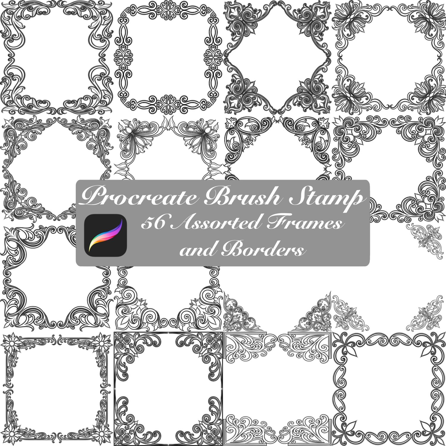 56 Assorted Frames and Borders Procreate Brush Stamps.