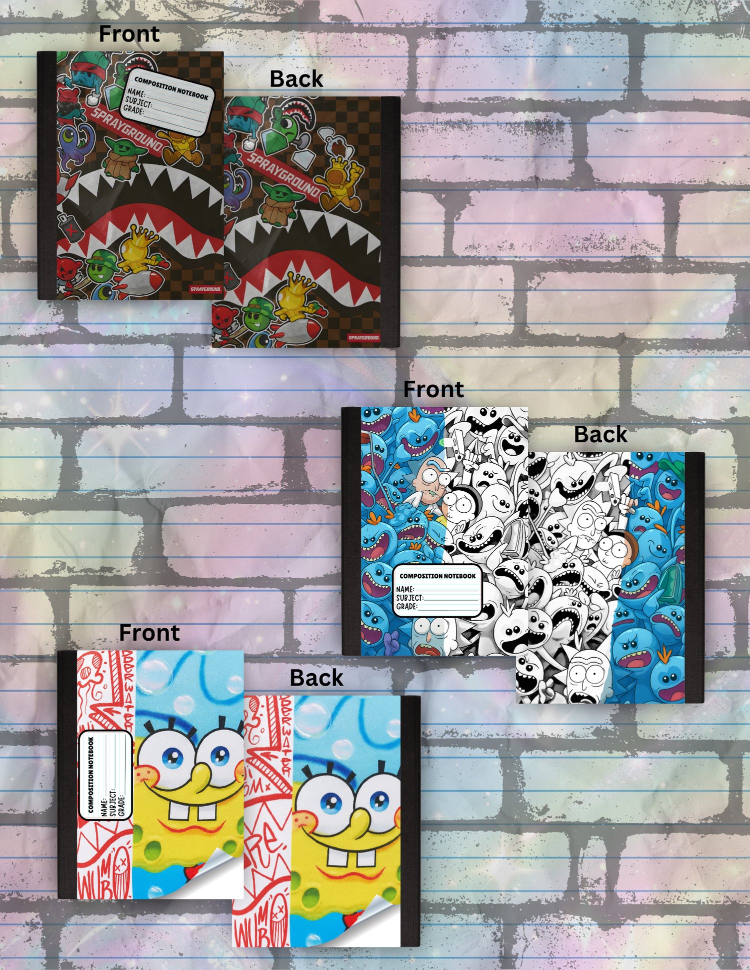 • 12 Front + Back Notebook Cover Templates (PNG format)