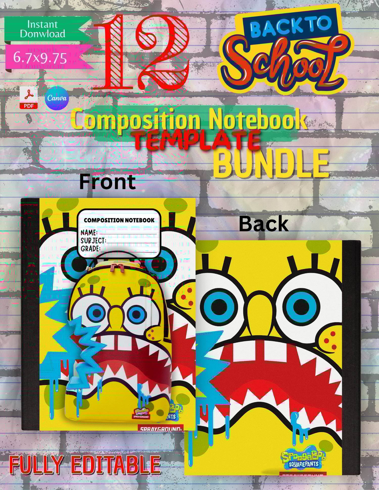 12 Editable Composition Notebook Template Bundle