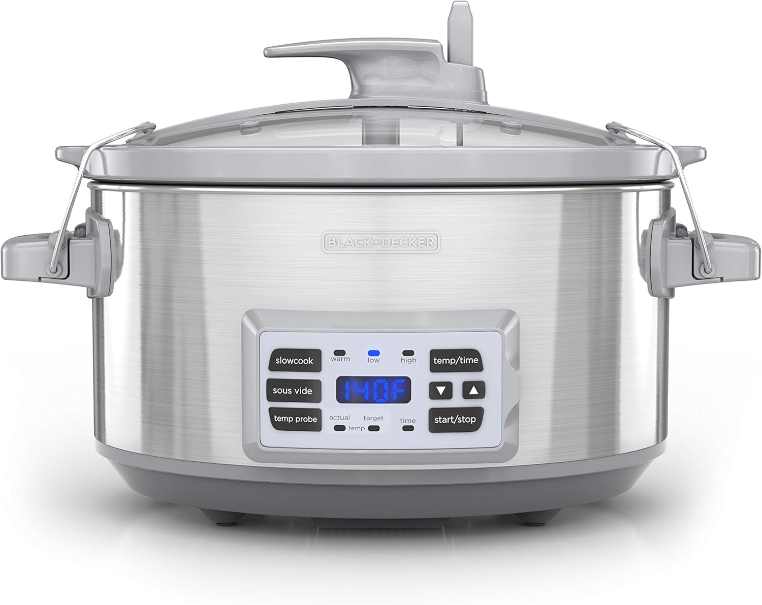 BLACK+DECKER 7-Quart Digital Slow Cooker – Temperature Probe, Sous-Vide & Removable Stoneware Crock