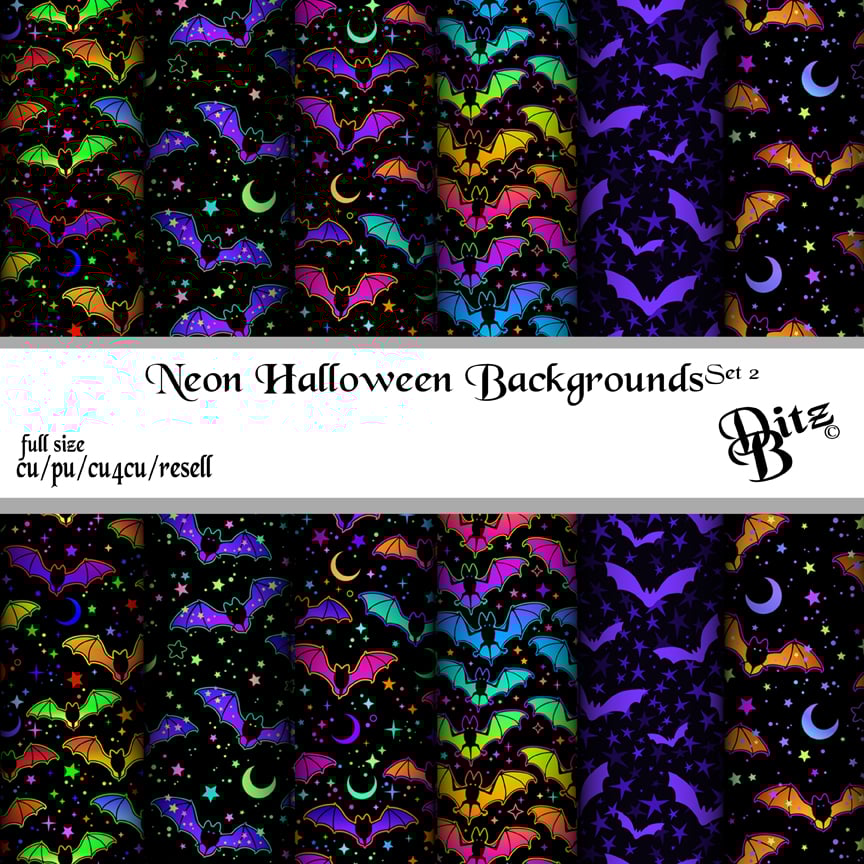 Neon Halloween Backgrounds Set 2