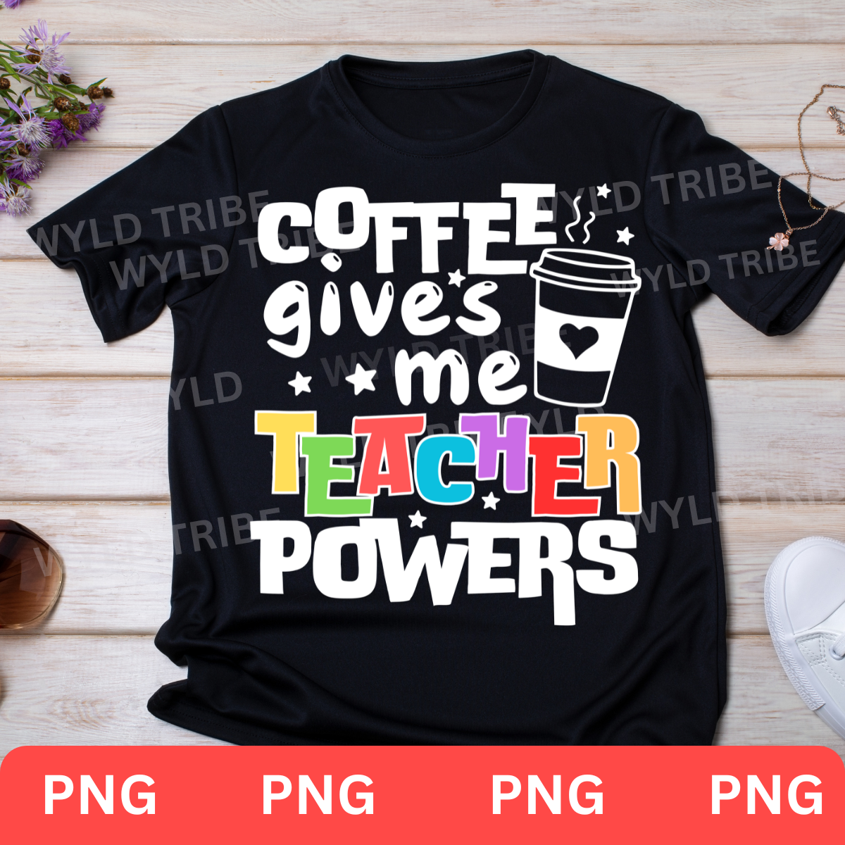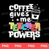 Coffee Gives Me Teacher Power Caffeine Lover Back To School Retro PNG