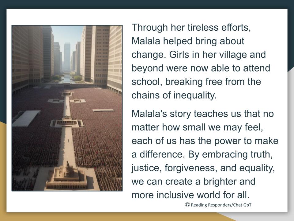 Malala's Courage: A Tale of Truth, Justice, Forgiveness, and Equality - a PDF book suitable for Year 6 students and older.