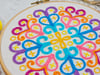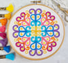 Mandala inspired embroidery pattern. The pattern is designed to be used as a kind of meditation. It uses just two stitches: chain stitch and lazy daisy stitch. The rhythm of working the stitches and the shapes is very relaxing.