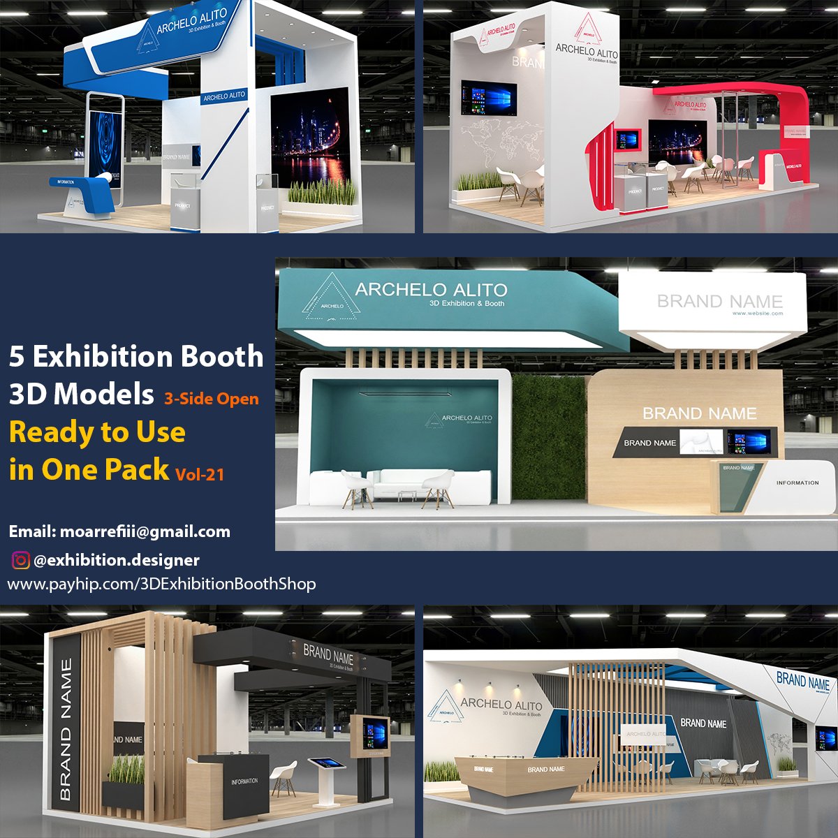 5 Exhibition 3D Model in One Pack ((3-Side Open Exhibitions))