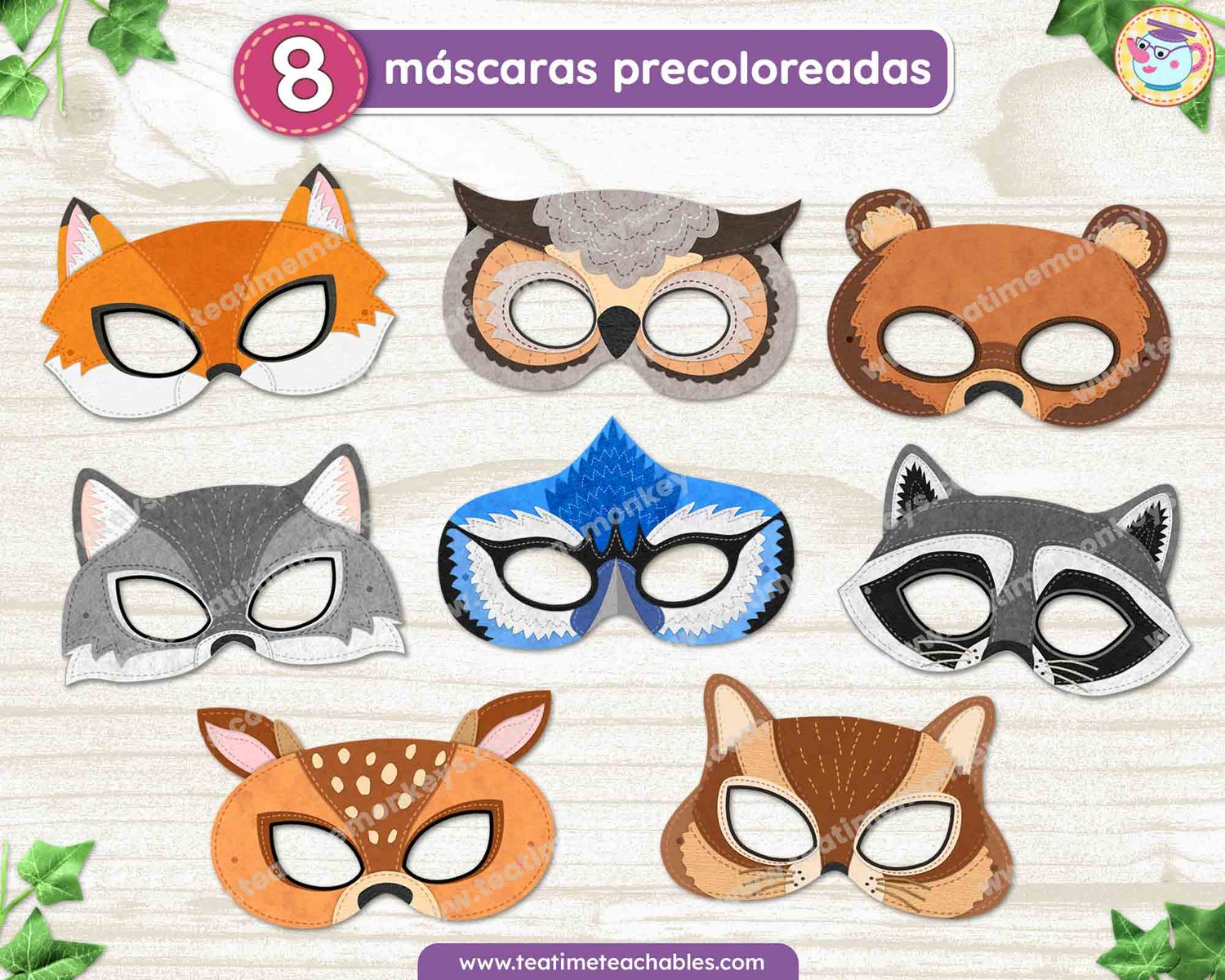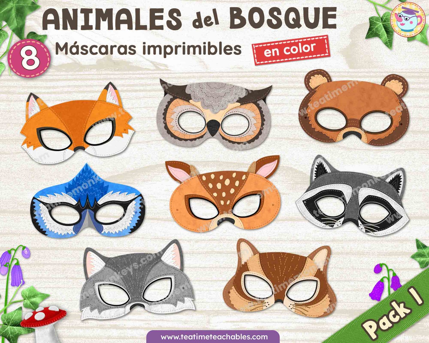 Animales del bosque - Máscaras PRECOLOREADAS - Pack 1
