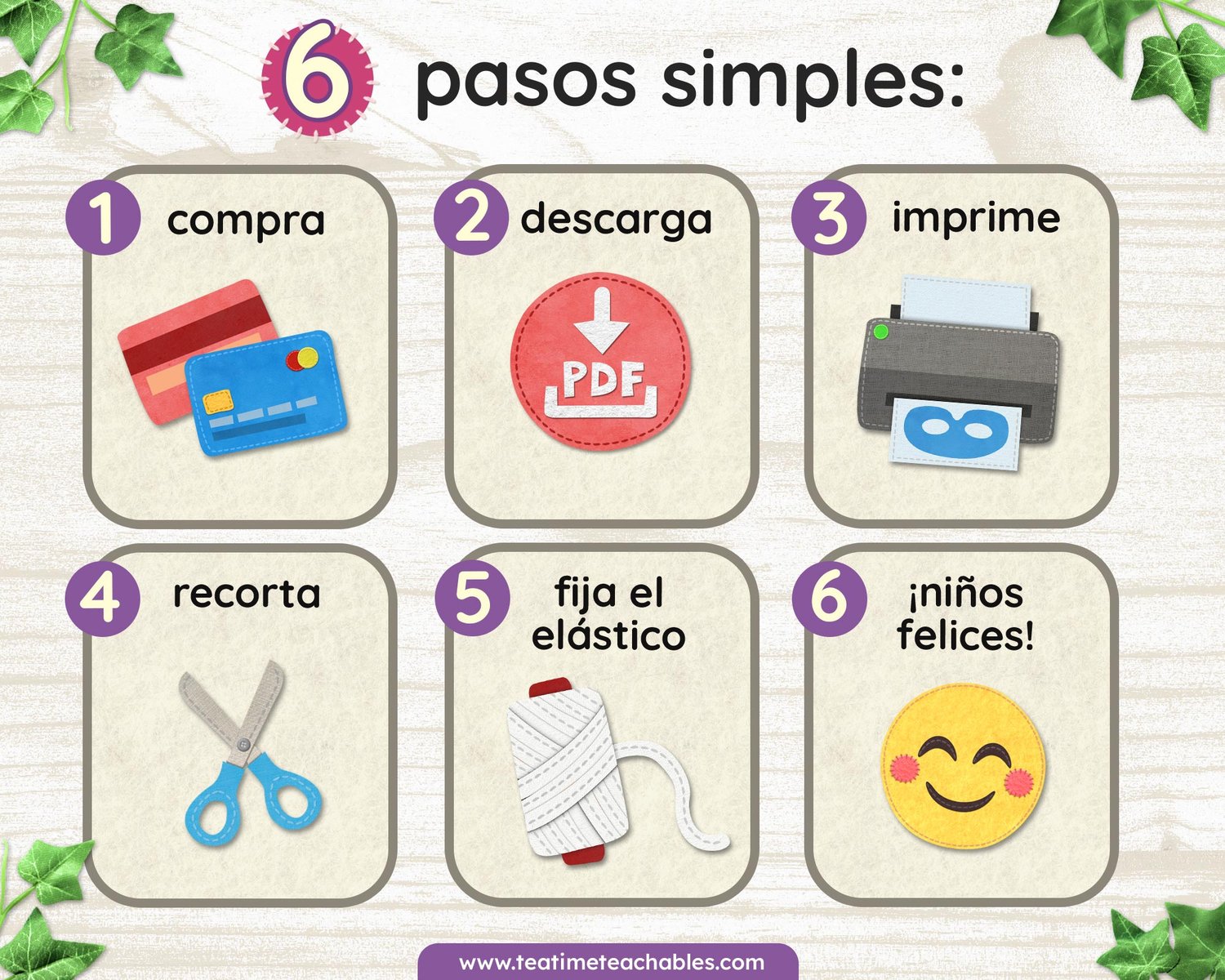 - Ficha de consejos con indicaciones sobre la mejor forma de imprimir y hacer las máscaras