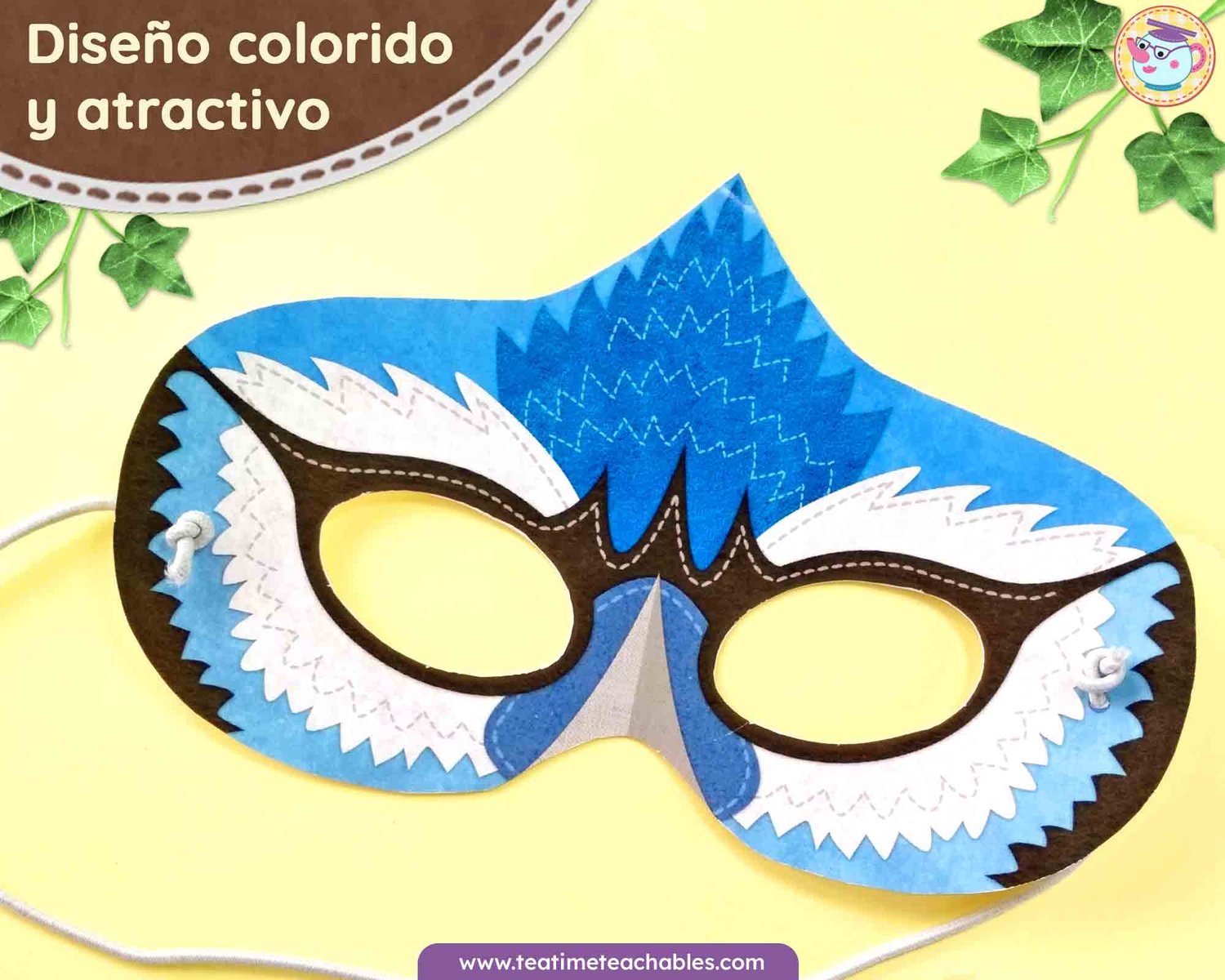 Las máscaras tienen formas simplificadas para facilitar el recorte, y guías para mostrarte dónde colocar el elástico. Además, dejan la nariz de los niños descubierta, por lo que son mucho más cómodas de usar que otros diseños en Internet.