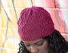 22 stitches and 28 rounds = 4”/10 cm square in hat body pattern on larger needles.