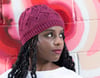 Hat body circumference: 14 (15¼, 16½, 17¾) (19¾, 21¼, 23)”/35 (38, 41.5, 44.5) (49.5, 53, 57.5) cm