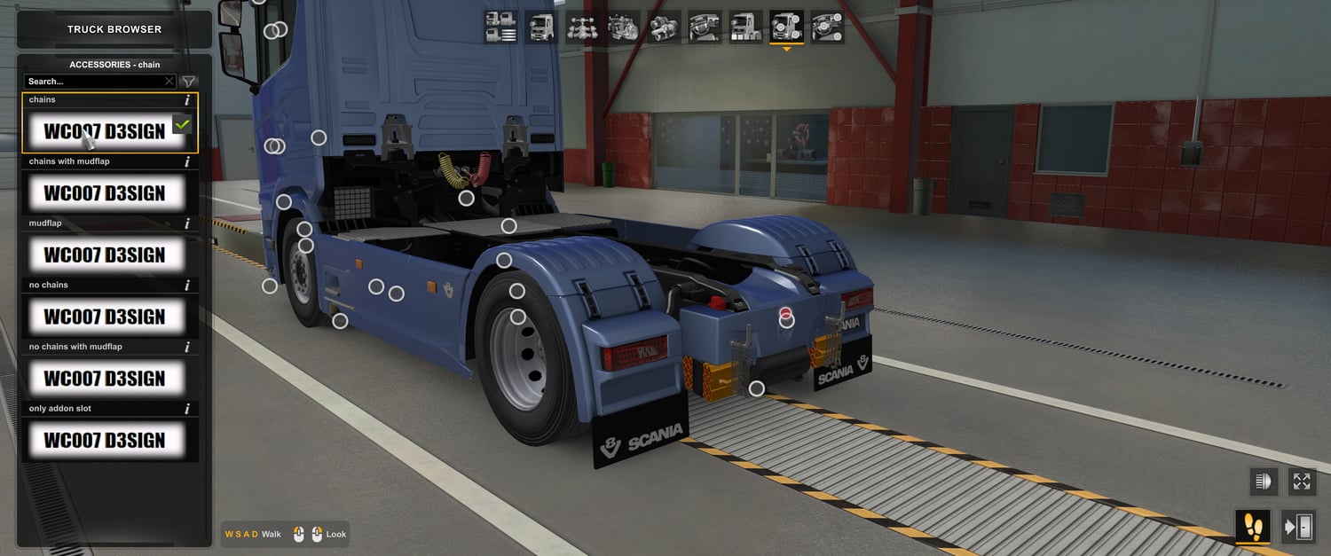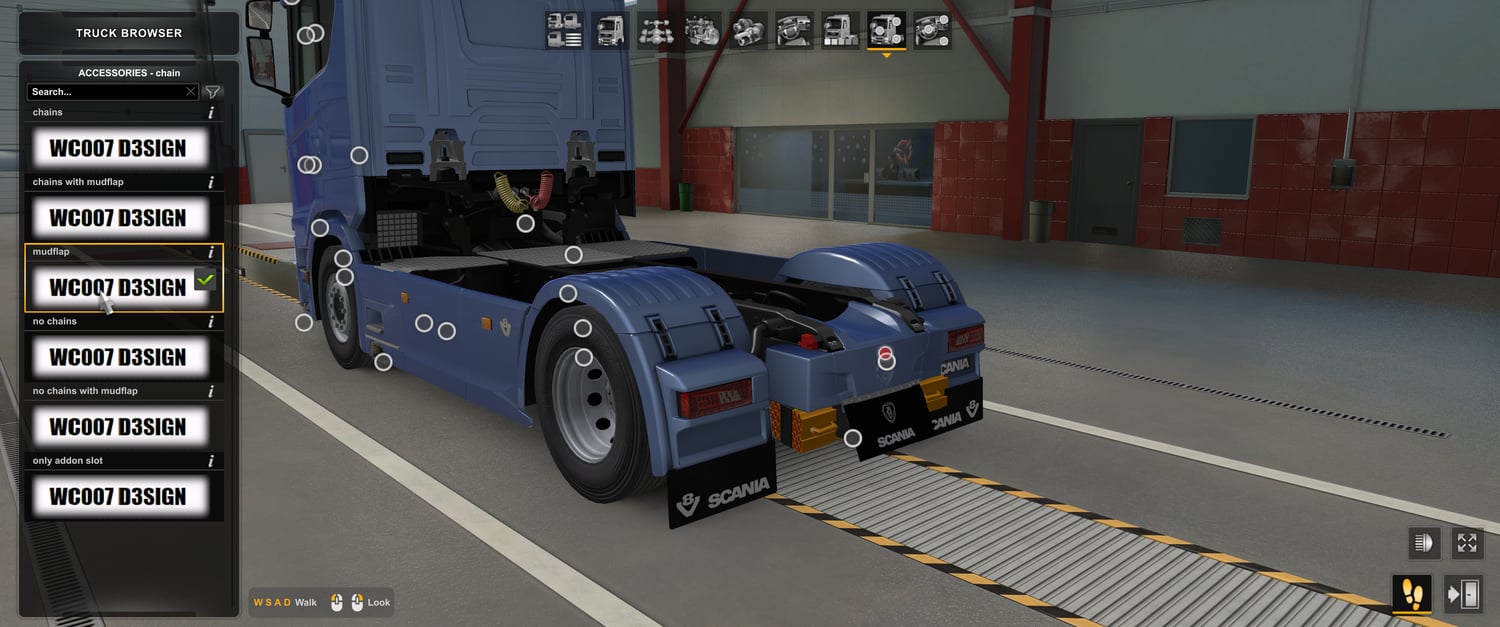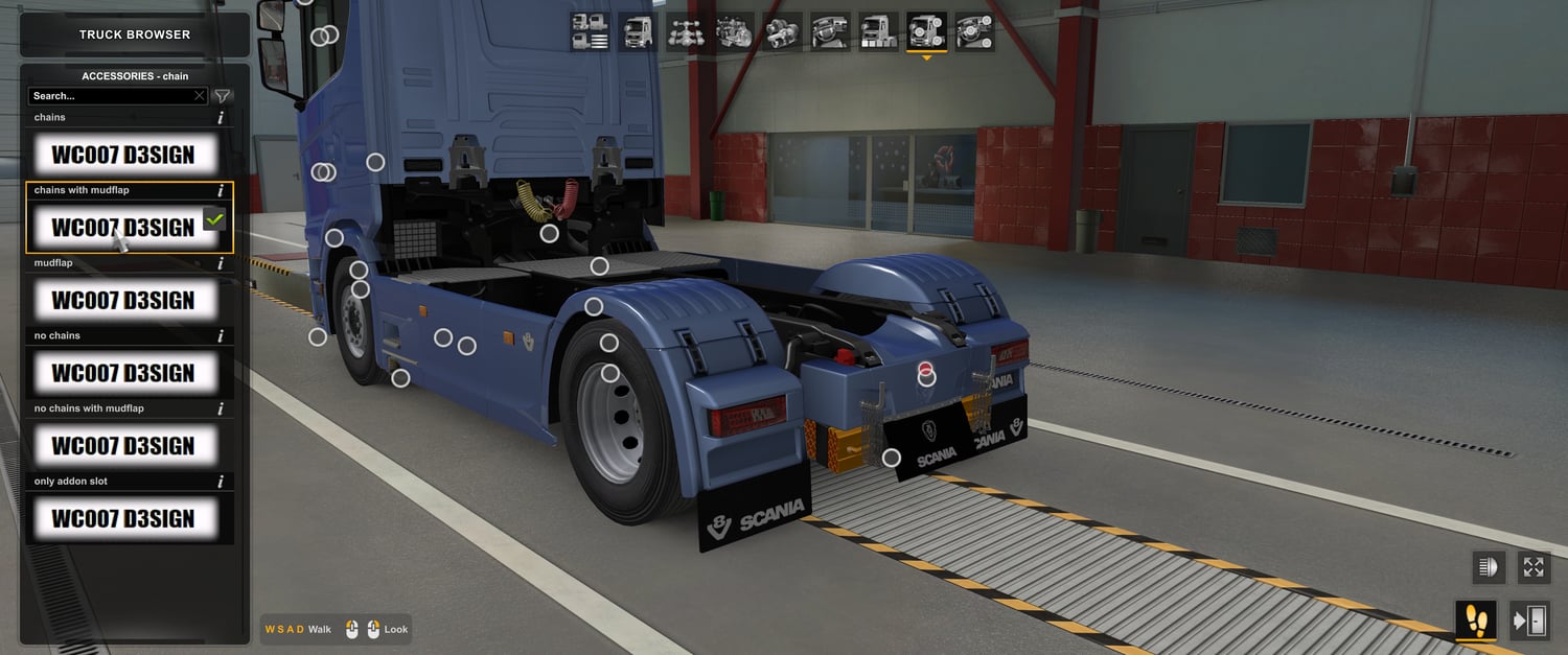 Scania NG rear bumper chains works only with Scania no spoiler mod V1 or Scania no spoiler mod V2 and not work with and Base game Scania truck