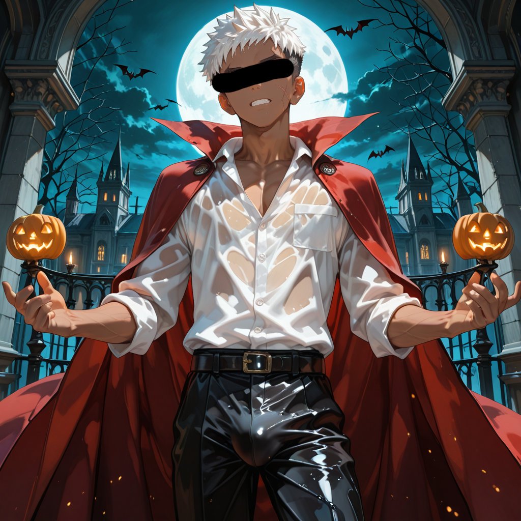 サウナで「ハロウィン」をテーマに、ヴァンパイアの男らしいキャラクターの魅力を思い切って表現しました。