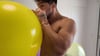 In this video, Brandon starts by inflating a 32" Cattex balloon, lets it deflate, and then puts it in his boxer.