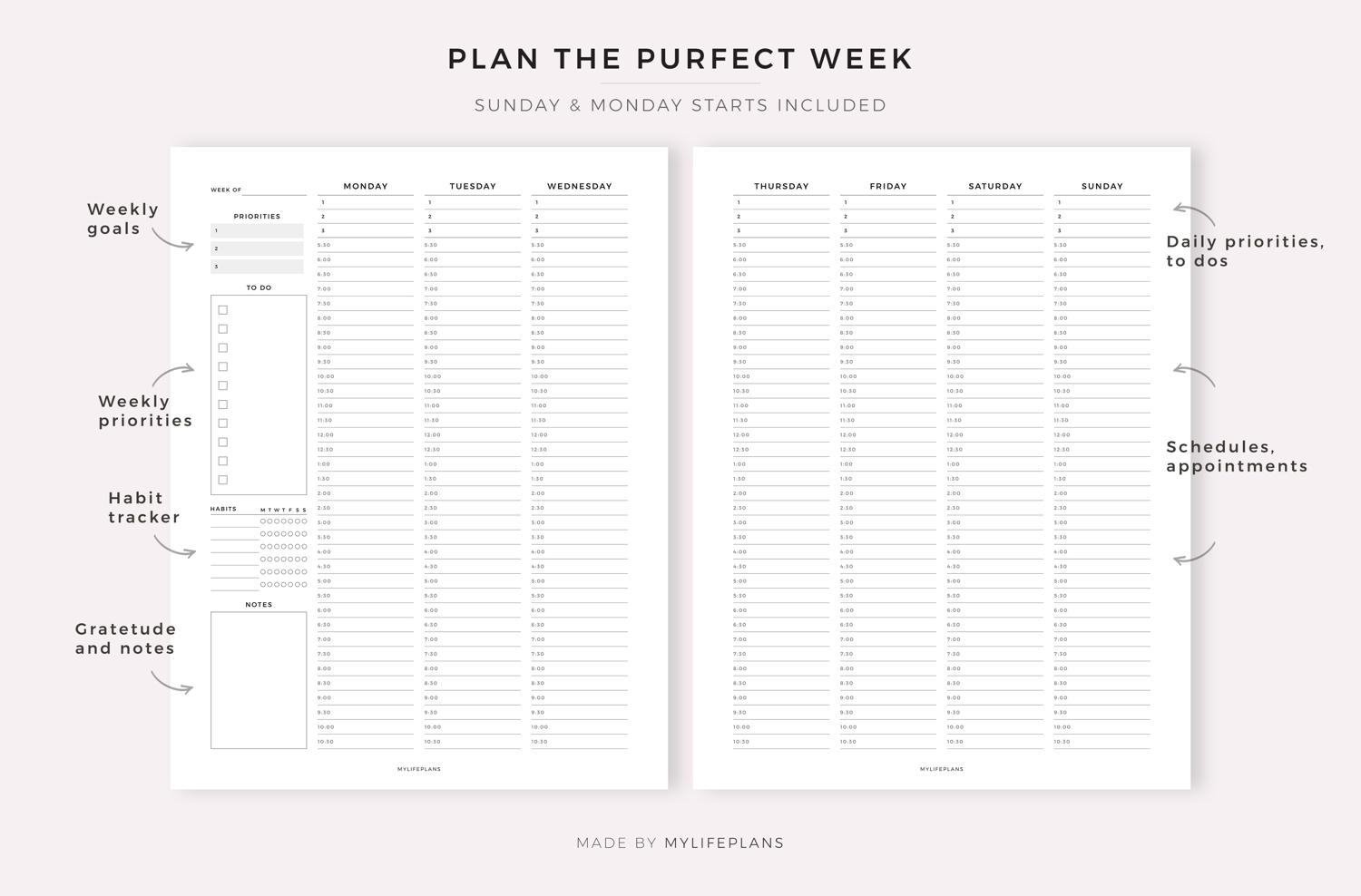 Digital Weekly Planner on Two Pages, Compatible with Goodnotes, Notability, Ipad