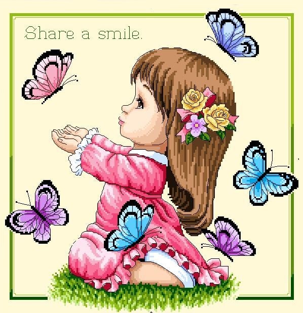 Girl and Fluttering Butterflies Pink - Cross Stitch PDF Downloadable Pattern