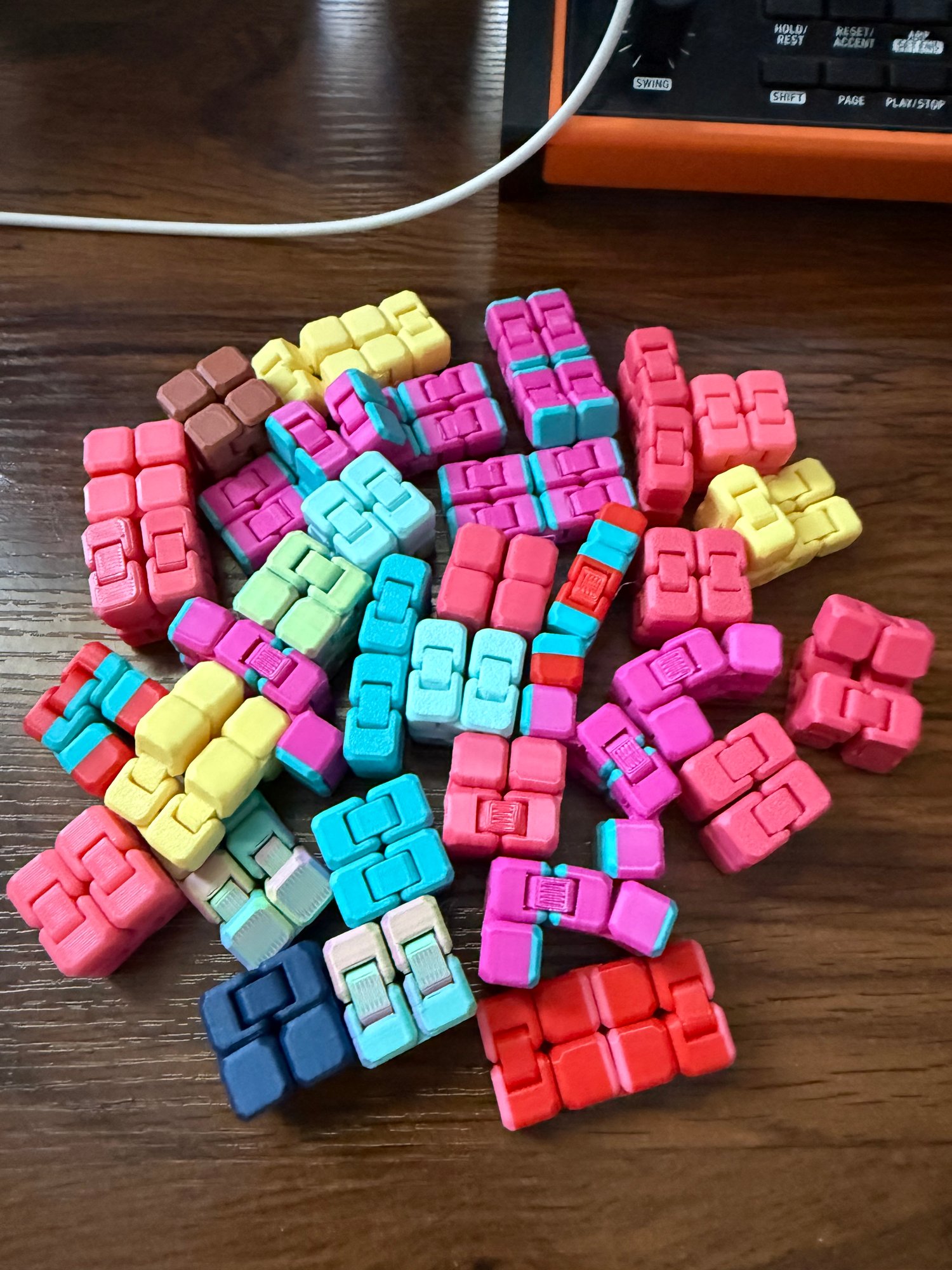 These are smaller infinity cubes that can be spun in and out of the cube with one hand while discreetly hiding in your pocket. Perfect for presentation anxiety or social anxiety in general. These are also fun to play with using both hands while talking in play therapy or for neurodivergent individuals like those with ADHD, autism, and more. They are sold in sets of 3 and the colors are chosen at random.