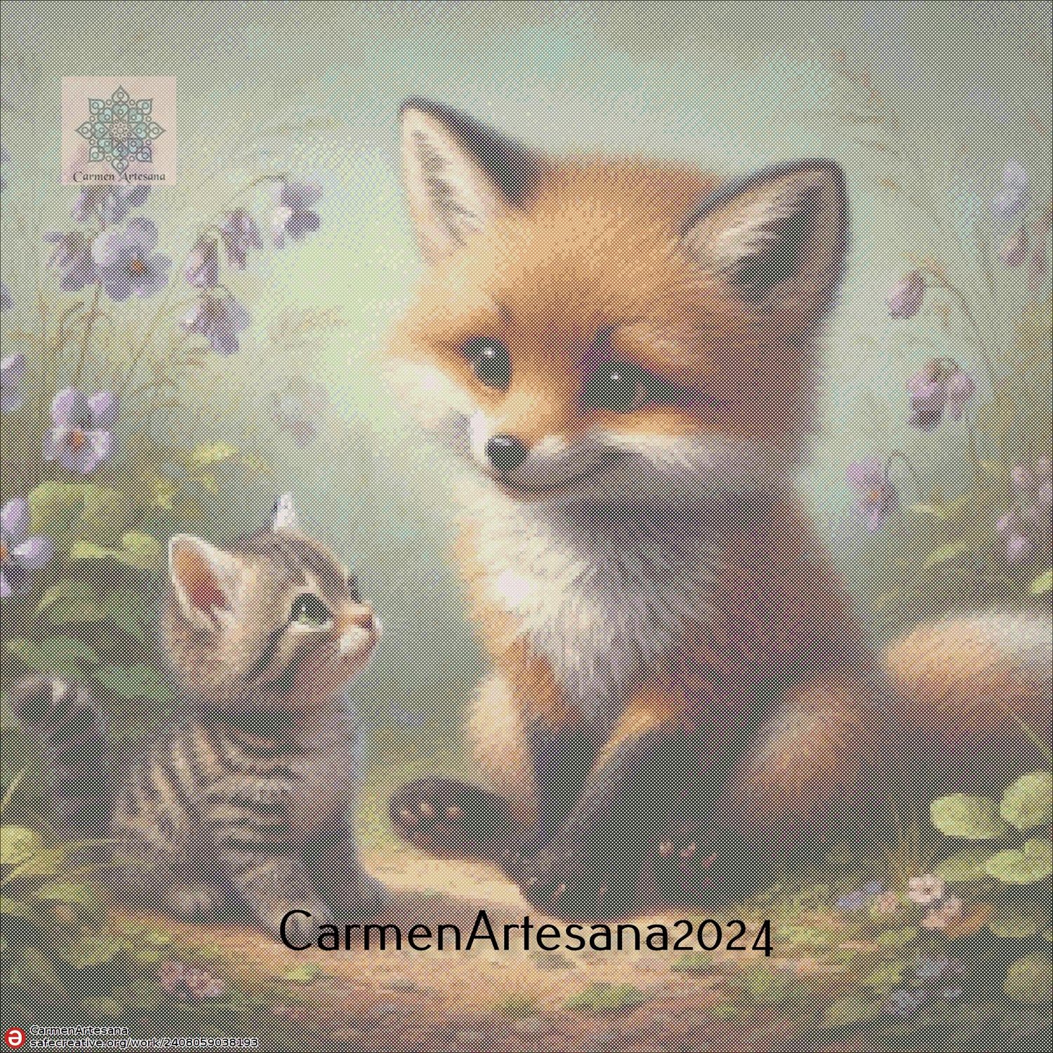 LITTLE FOX AND KITTEN cross stitch pattern PDF