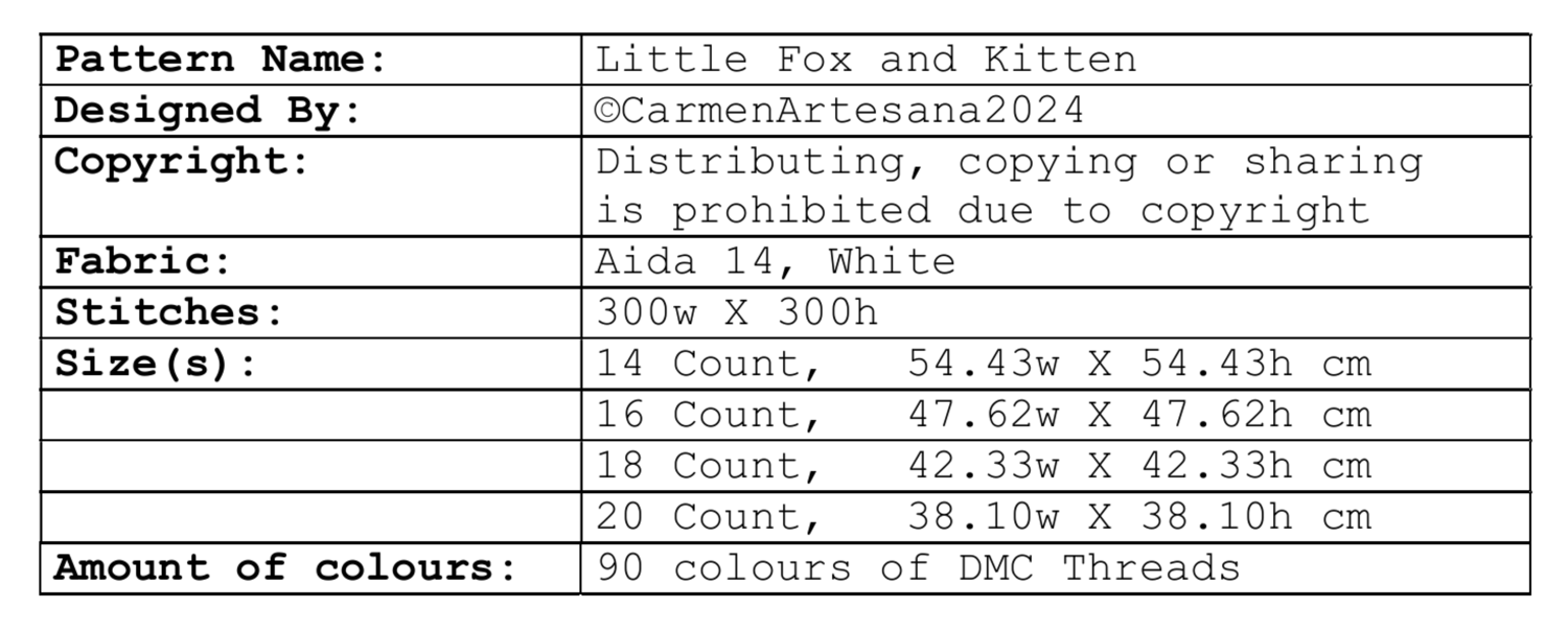PDF cross stitch pattern, Little Fox and Kitten, DMC Threads