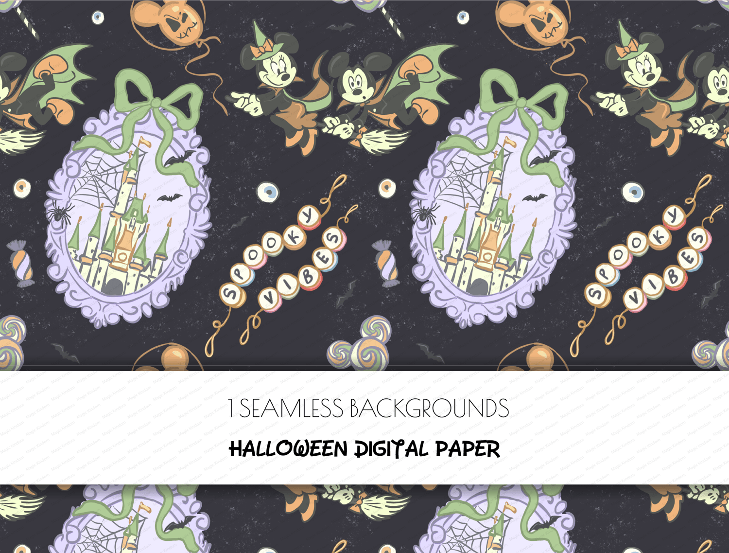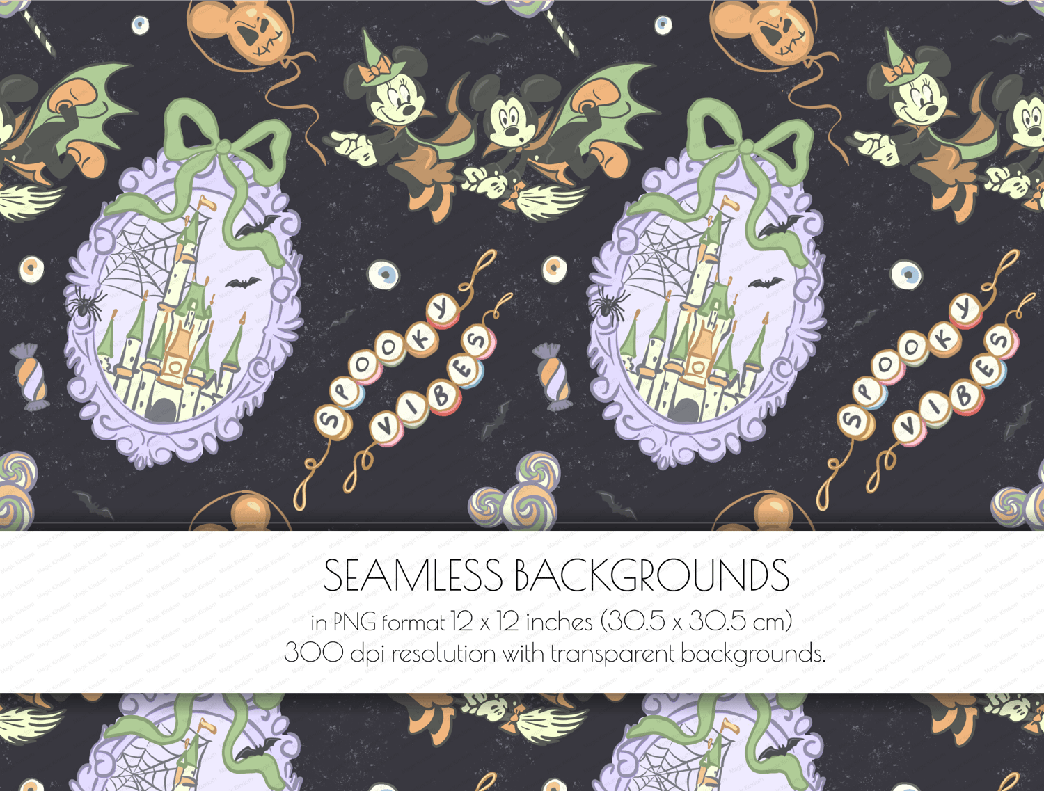 1 Spooky mickey, nightmare on main street Seamlessbackground PNG format 12 x 12 inches (30.5 x 30.5 cm) 300 dpi resolution .