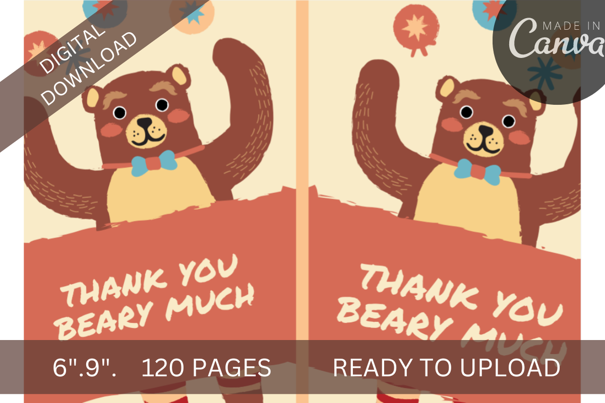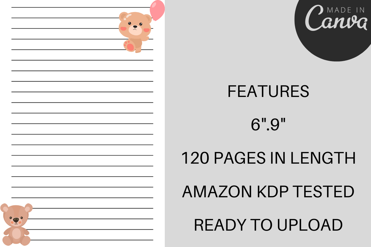 INTERIOR+COVER FOR BEAR KDP LINED PAPER, KDP KIDS JOURNAL, FIRST LEARN TO WRITE, TRACING BOOK KDP, LOW CONTENT BOOK FOR KDP READY UPLOAD, KDP JOURNAL PAPER