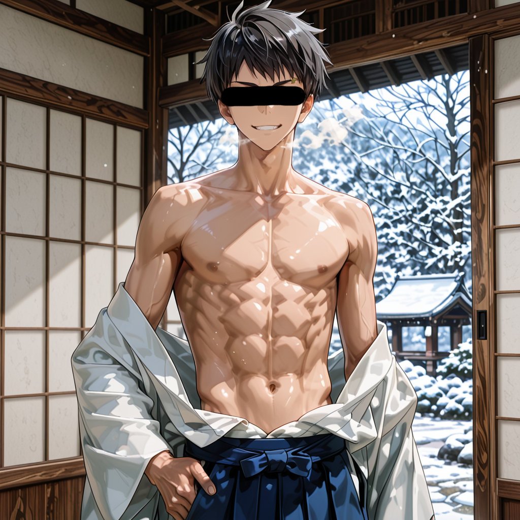 日本の正月をテーマに、着物を着用している男性を、キャラクターごとにお任せ作成しました。男らしいキャラクターの魅力を思い切って表現しました。