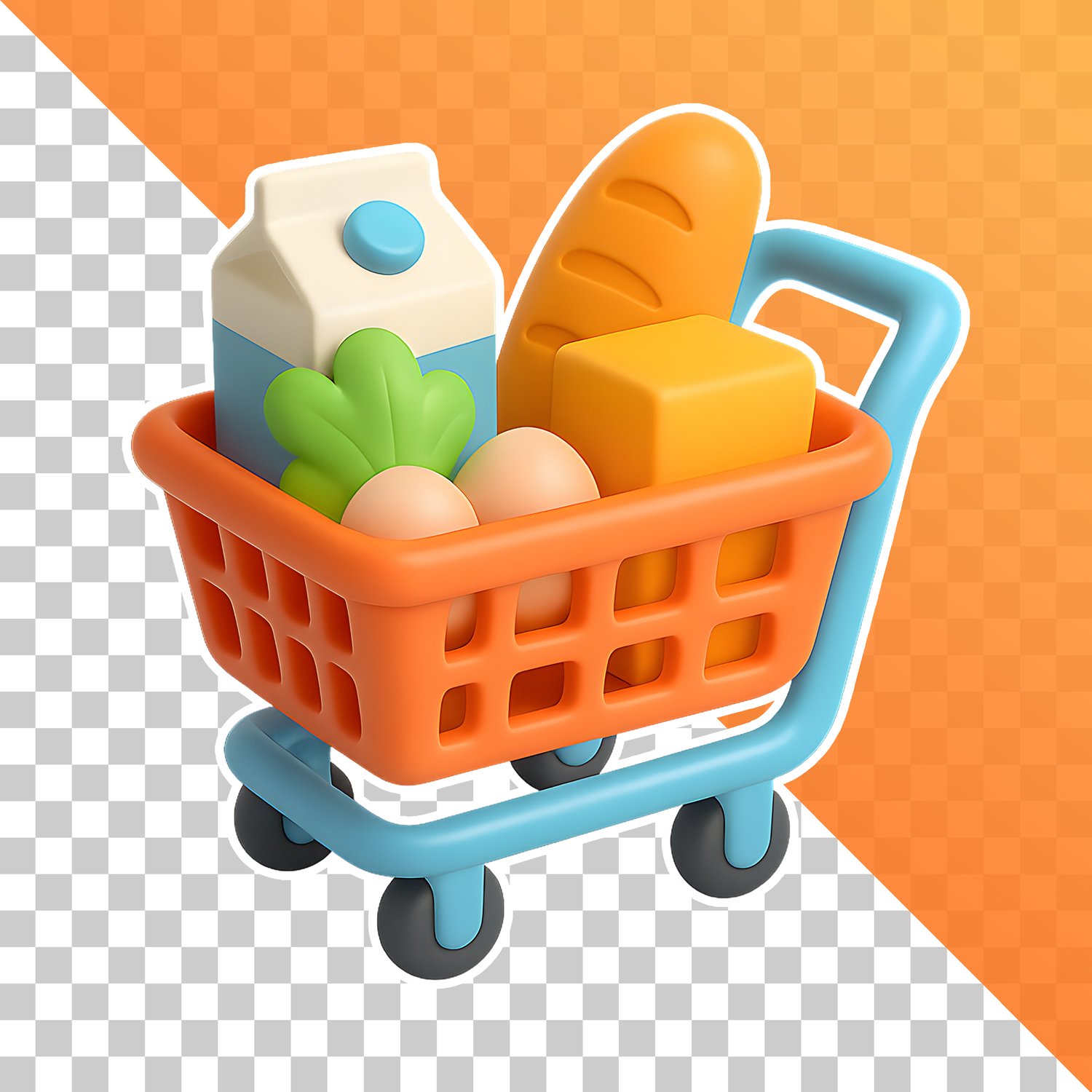 3D Cartoon Grocery Shopping Cart Icon Isolated Transparent PNG