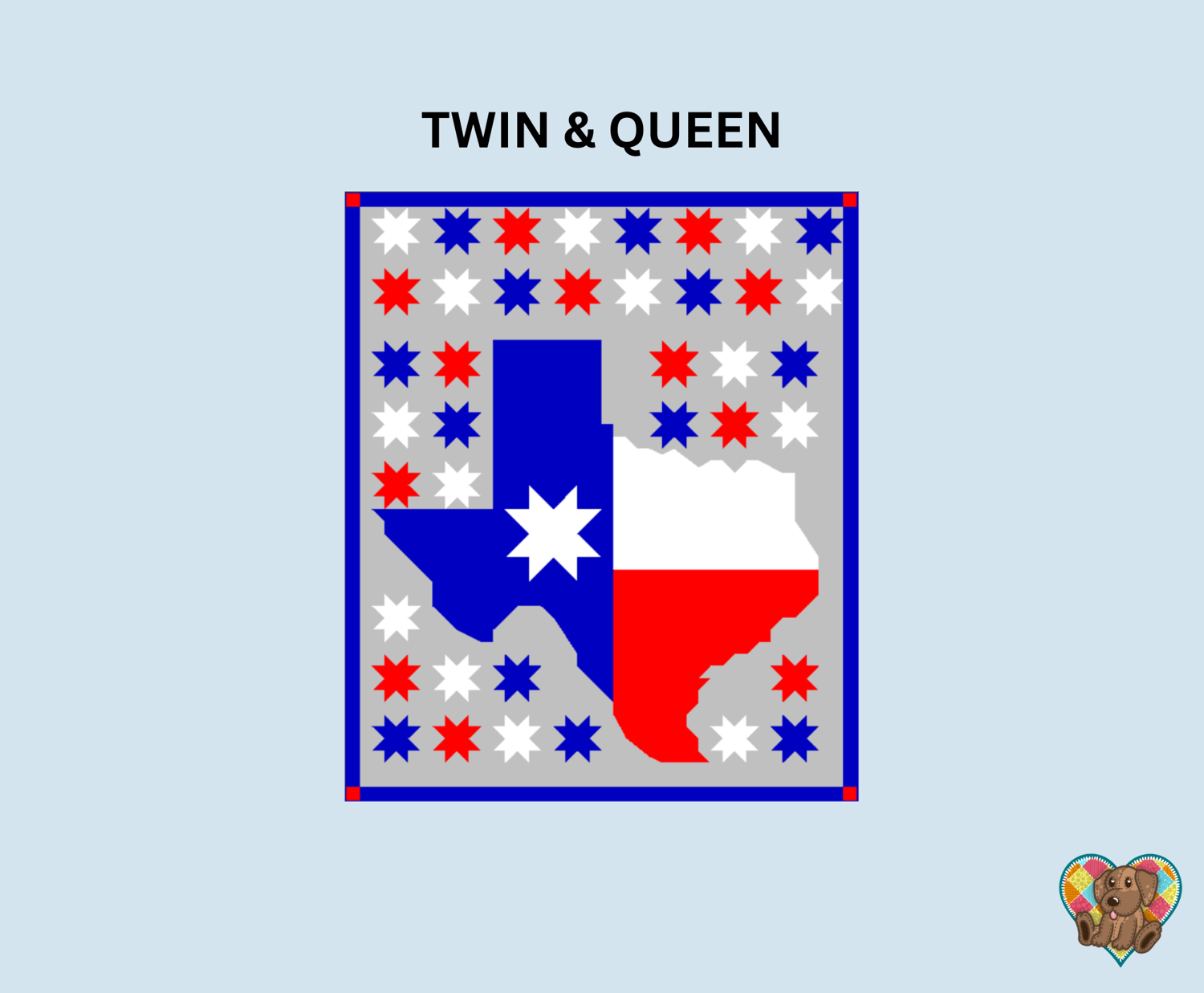 *Note: This pattern includes instructions for a baby (42.5" X 42.5"), lap (64.5" X 64.5"), twin (75.5" X 90"), queen (90" X 107"), and king (110" X 110") size quilt.* Blocks are traditional pieced blocks.