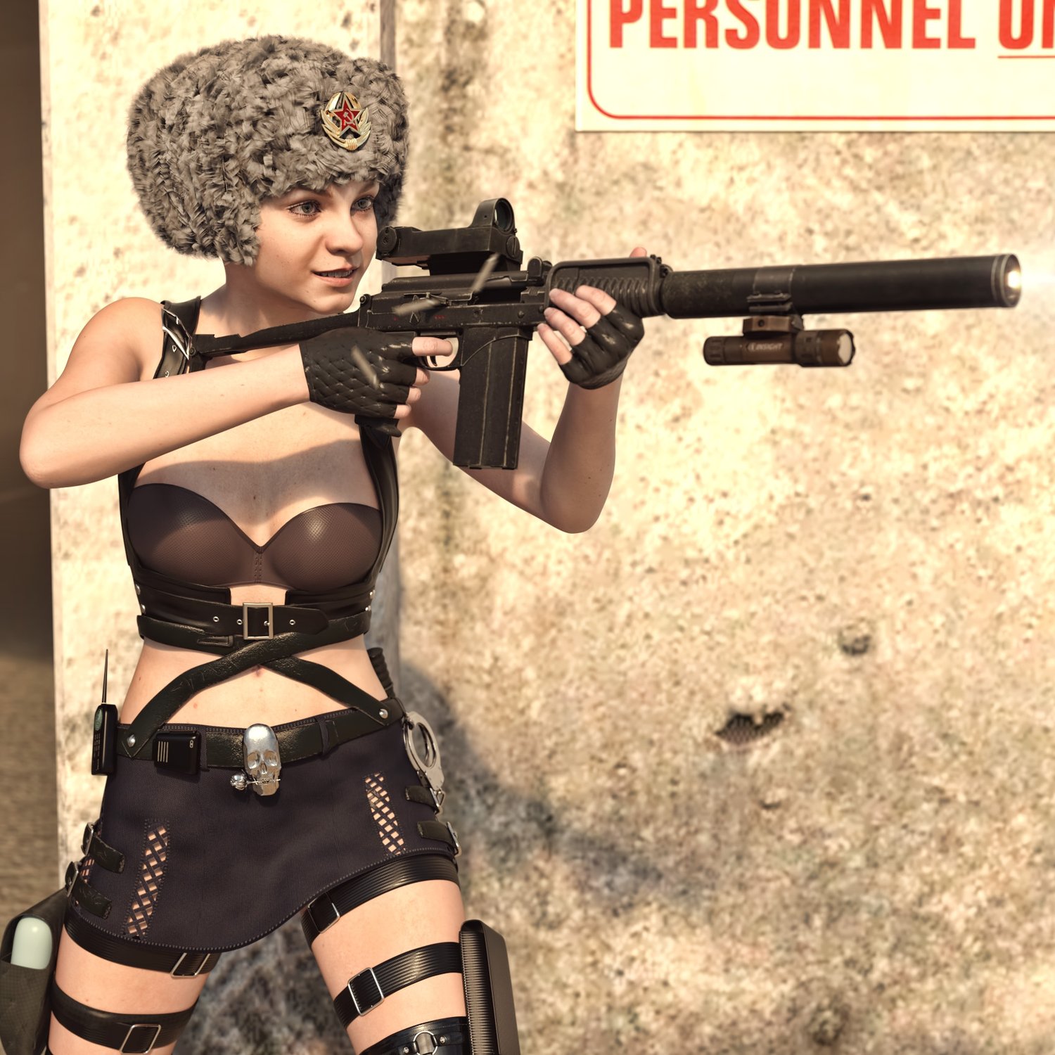 The short silenced rifle developed for the police forces, rigged and converted for use with DAZ. Developed in the post soviet era, it remains in use until now. Very small profile and silenced. Trigger, safety, bolt, stock, etc also rigged for more realistic pictures. Includes a red dot sight, silencer, and a flash light for various porpoises and pictures.
