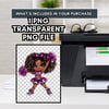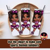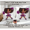 This character is bursting with personality, from her confident, high-kick pose to her beautiful curly hair adorned with a big purple bow. This is the perfect cute Black girl sports clipart for sublimation, designed to make your t-shirts, tumblers, and accessories look absolutely stunning.