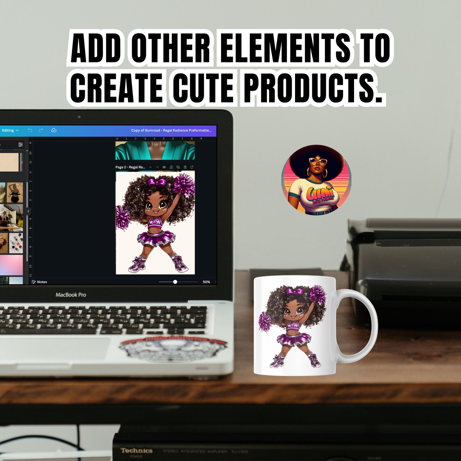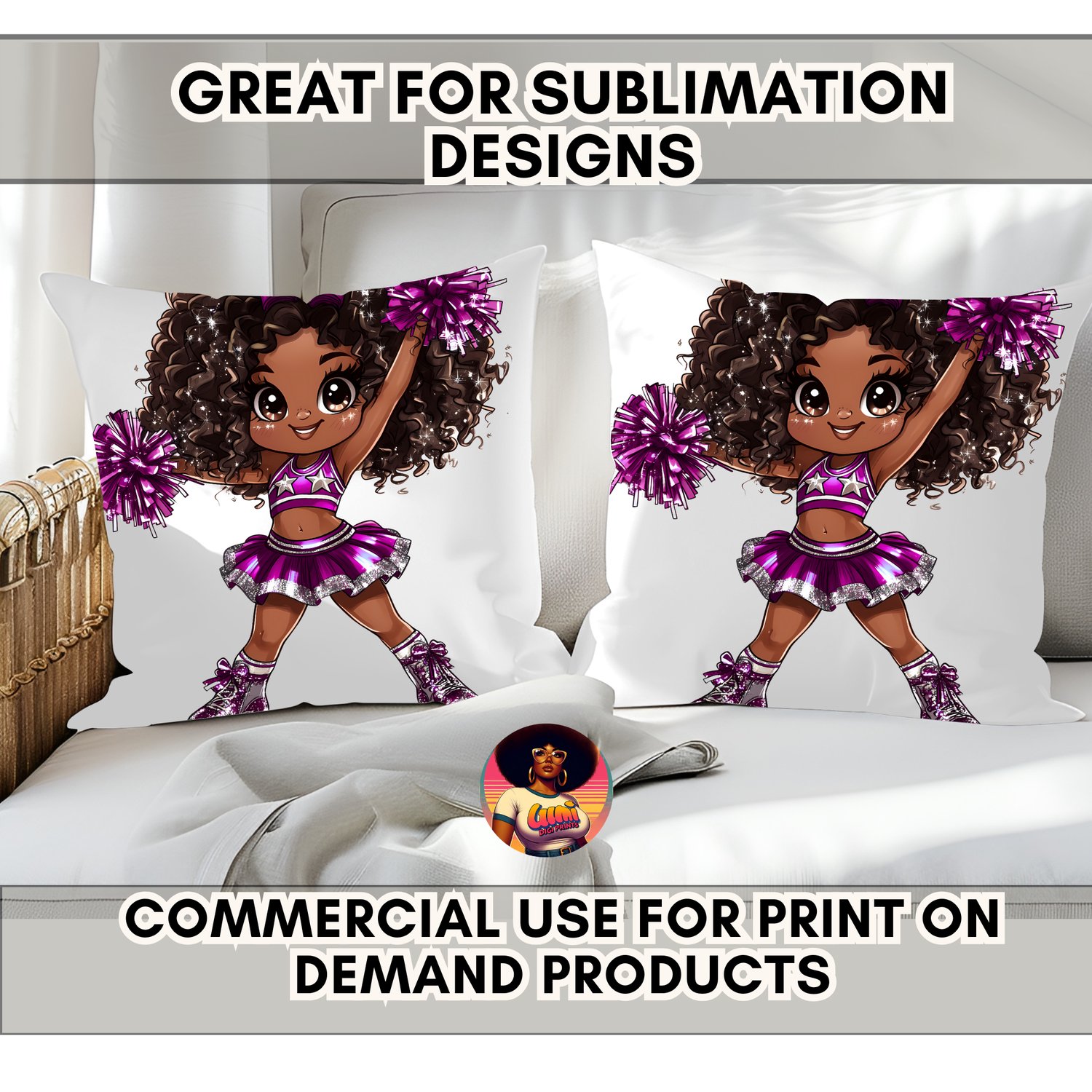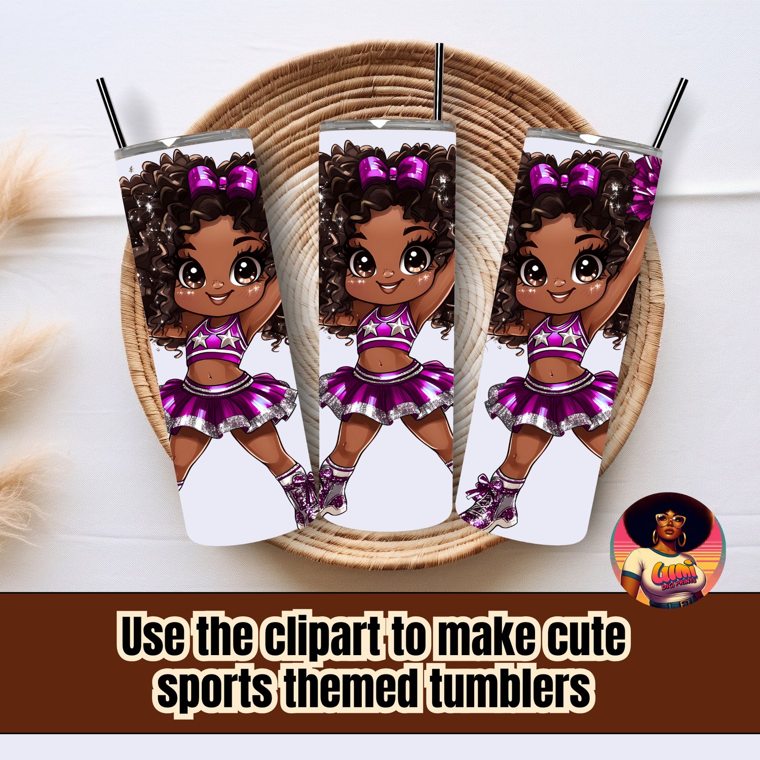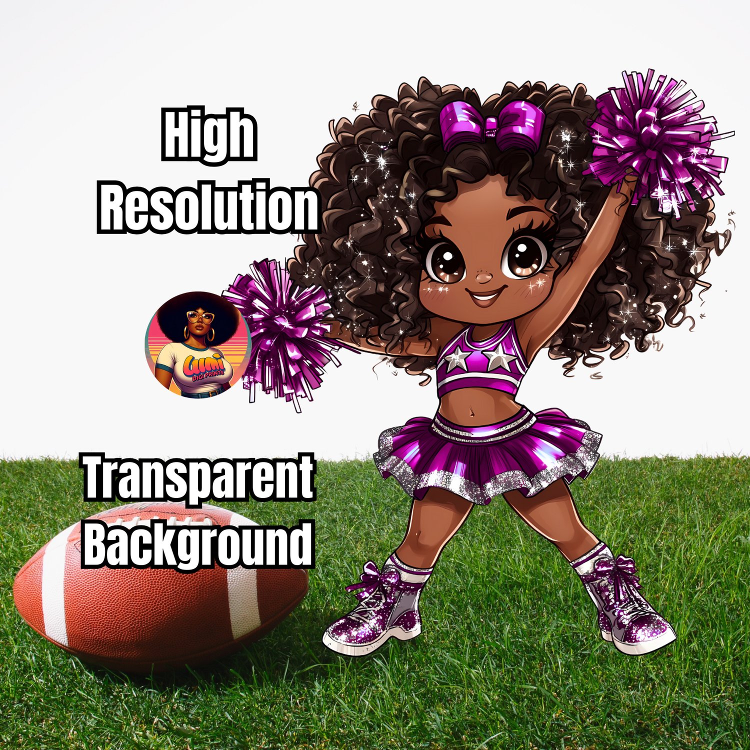 Purple Cheerleader PNG | Black Girl Clipart for Birthday & Team Spirit Crafts