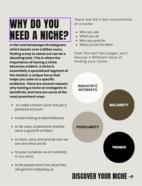 It’s a full workbook + strategy guide packed with actionable steps, fill-in worksheets, prompts, and planning pages to help you map out every part of your Instagram growth plan.