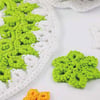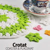Materials: King Cole Bamboo 50% cotton/50% bamboo. To make a set of four coaters and placemats plus the oval placemat, you will need 3 in white (530) and 2 in lime (533).
