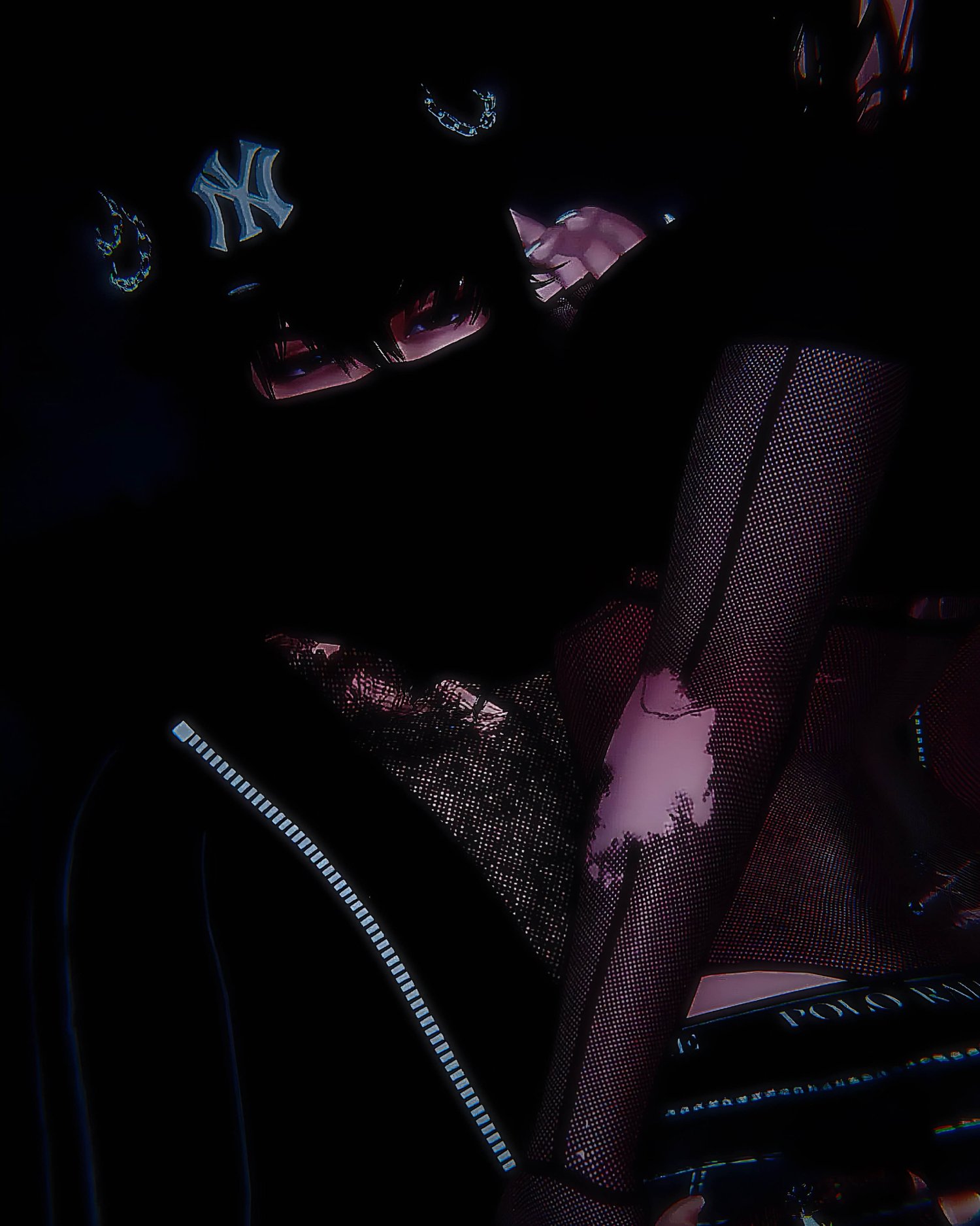 Glasses,Carti glasses,mouth key, Arm bandage, Chain 1, Chain 2, Cleaver, Latex Gloves, Her panties, Her Ribbon choker, Arm acc, Arm bandana, Rings, Face and Neck bandaid, Balaclava mask, bracelets