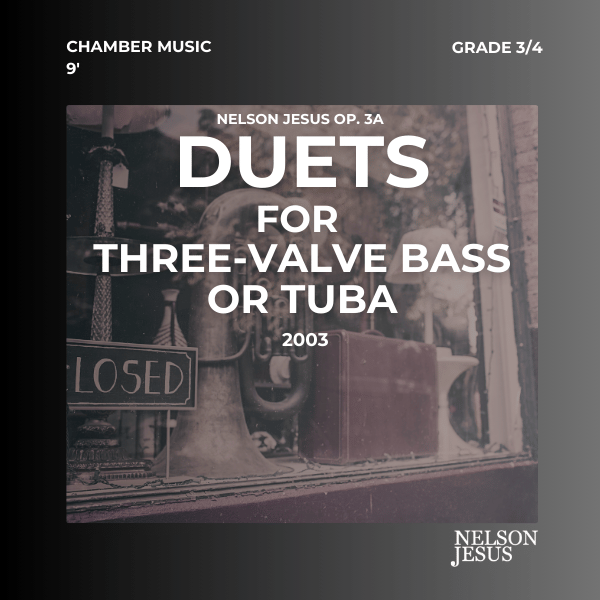 This work was commissioned by and dedicated to my colleagues Pedro Henriques and Pedro Santos, who at the time were students at the Caldas da Rainha Conservatory, in Professor Adélio Carneiro’s tuba class.