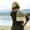 Inlet Scarf is inspired by one of my favourite places, a secluded beach on the remote side of Burrard Inlet, offering breathtaking vistas of towering mountain ranges an their fleeting reflections in the rippling water. It’s the quiet place full of nature’s sounds which I tried to translate into the stitches on my needles. I love the magic of geometric shapes and aimed to create a pattern that is universal, simple and appealing.