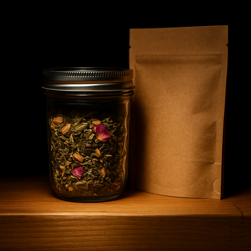 A soft, radiant herbal blend created to support natural glow, gentle skin care, and beauty rituals. Crafted with botanicals chosen for softness, restoration, and emotional calm.