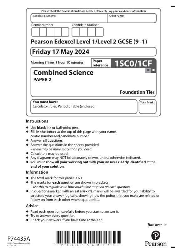The Edexcel GCSE Combined Science Foundation Tier June 2024 papers are divided into Biology, Chemistry, and Physics components, each assessed across two papers.