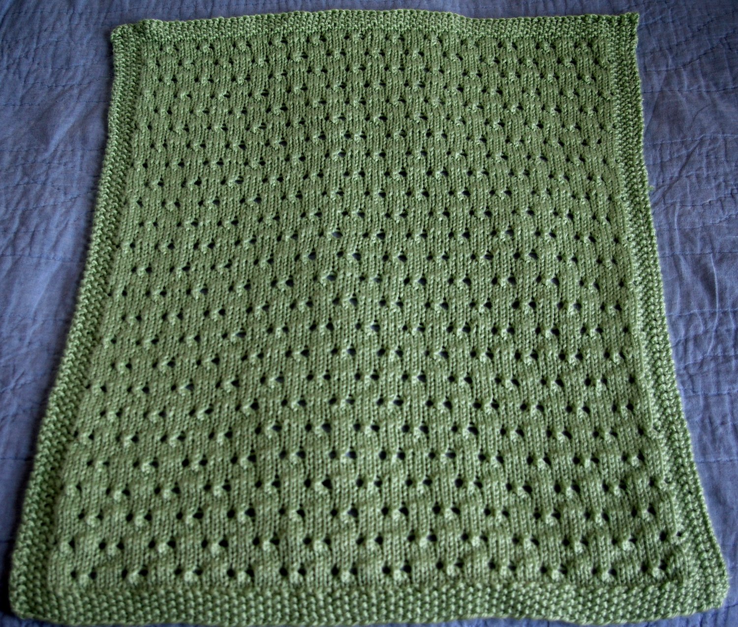 This blanket, like most of mine, is available in two sizes. The smaller size is great for bassinets, carseats, and “lovies.” The full size works great in a crib or as a floor blanket.