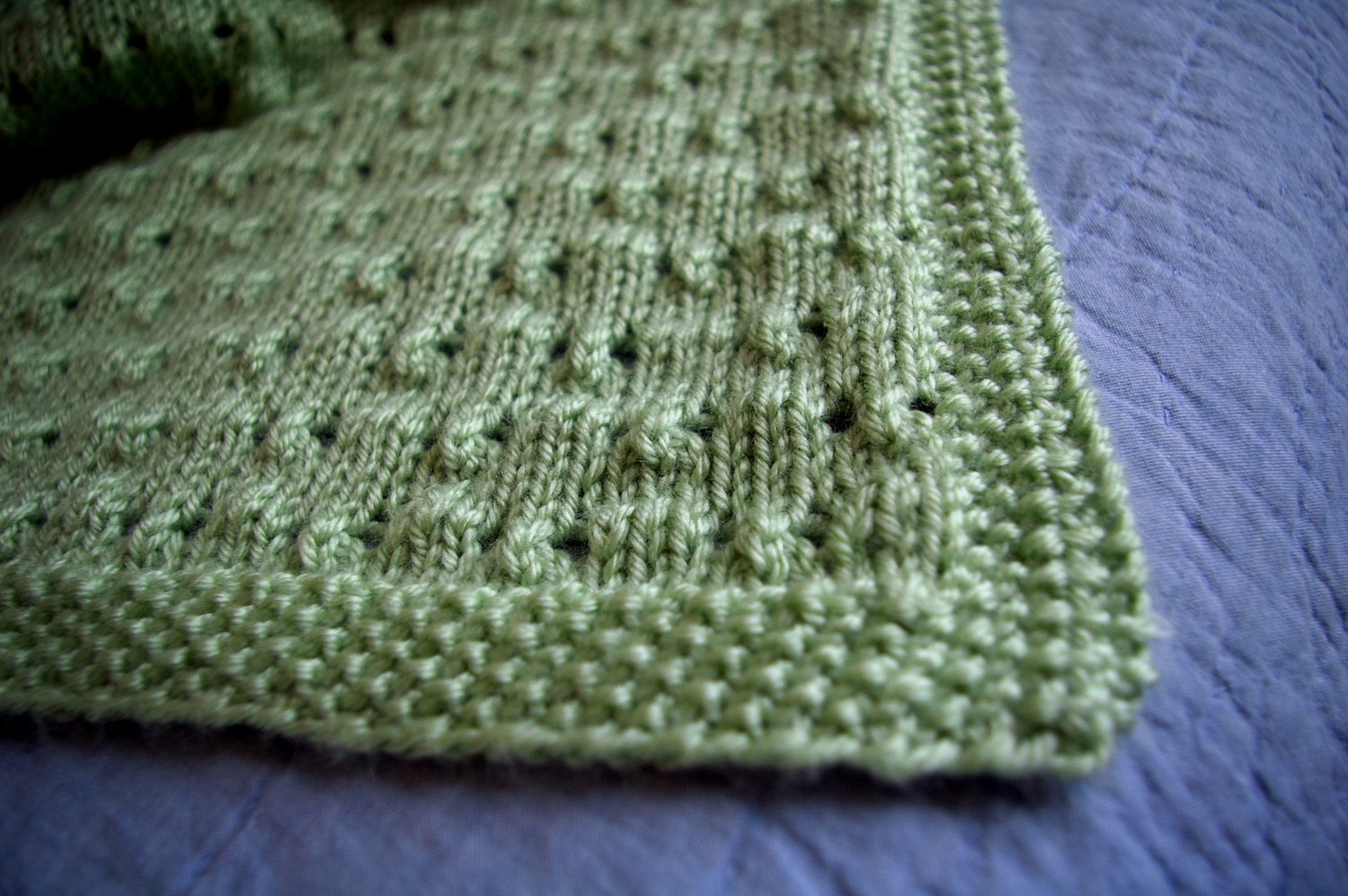 Peekaboo is so much easier when you’ve got some eyelets to help you peek! This gender-neutral but still light and lacy blanket packs a lot of movement and texture into a very simple stitch.