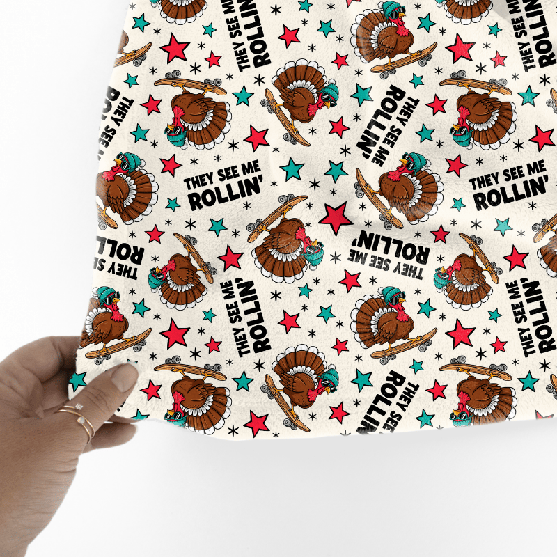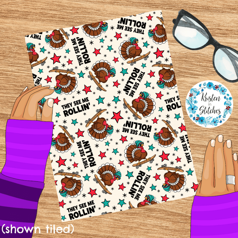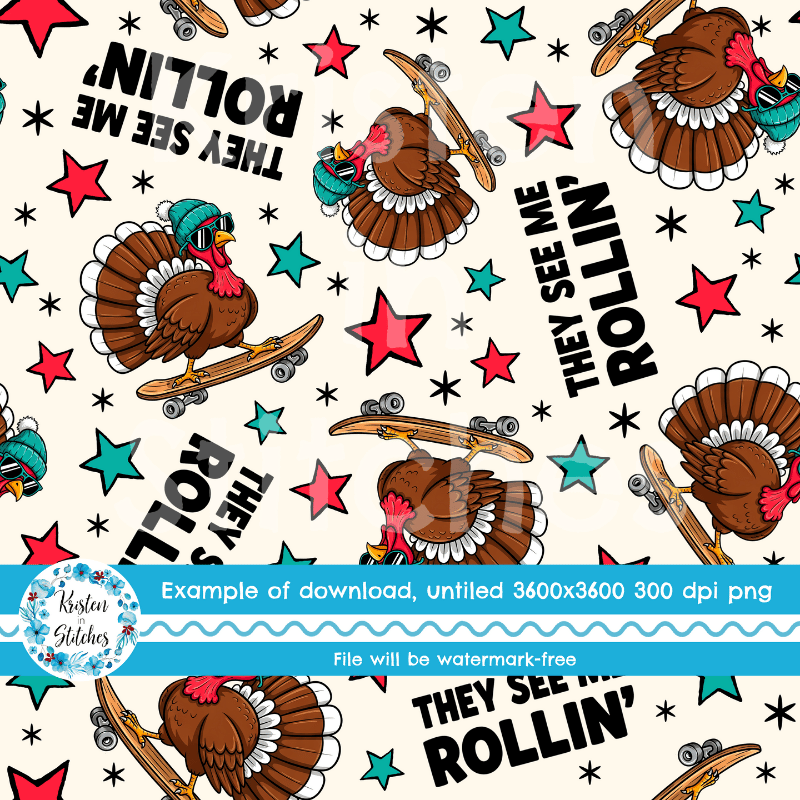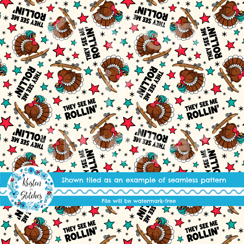 They See Me Rollin' Skateboarding Turkeys Seamless Pattern