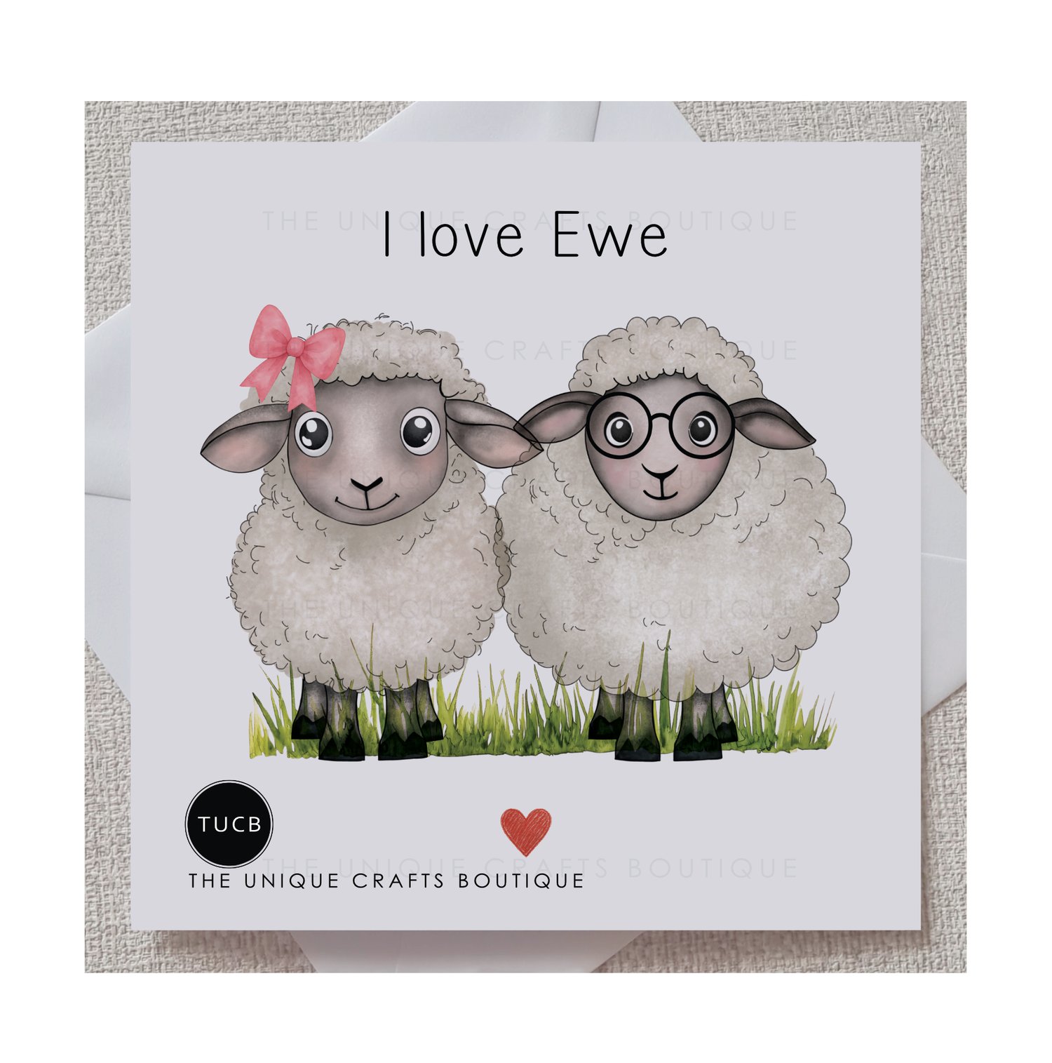 This card is perfect to show your love and make your partner smile this Valentine's Day. Printed with 2 cute fluffy sheep and the message 'I love Ewe'