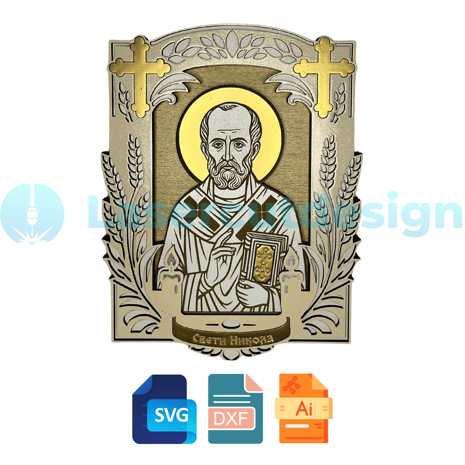 Saint Nicholas Icon SVG DXF AI | Sveti Nikola | Orthodox Christian Laser Cut Files | St Nicholas Religious Icon | Church Wall Decor