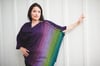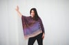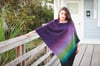 Indulge yourself and play with colour! This simple project features an ombré fabric created by working with two strands of yarn held together throughout. You work colour changes by first knitting with two strands of the same colour, followed by a strand each of the old colour and a new colour, followed by two strands of the new colour; repeat! To aid in the optical blending of the colours, the reverse stockinette side faces outwards. The poncho is worked as a large rectangle with buttonholes in one of the ribbed selvedges. Folded in half and buttoned, it creates a poncho that hangs diagonally. And a bonus, you can wear the poncho with the stockinette side out too.