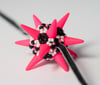 A tutorial for a wonderful exuberant ball of Czech spike beads or Czech gumdrops, held in place by a network of seed beads and Czech fire polished beads. The beaded ball is hollow and self supporting, and can be beaded in a couple of hours by an intermediate beader using Netting and Modified Right Angle Weave.
