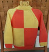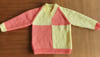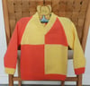 This child’s V neck raglan jumper, with rib bands, is worked in two colours. It is very easy to knit, with the colours used bringing the ‘wow’ factor to the design. I used bright, happy colours but it will look equally striking in a black-grey or navy-light blue combination.