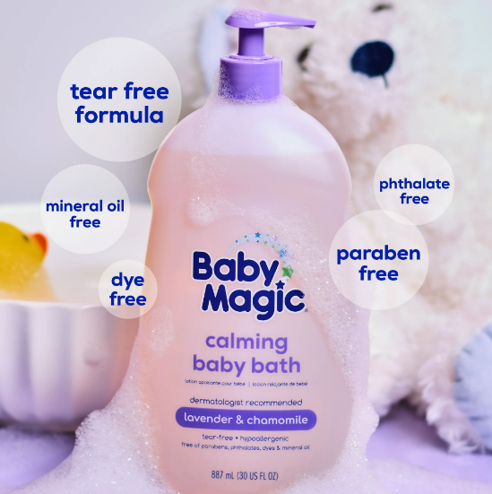 Each Baby Magic product is crafted for baby's sensitive and delicate skin and features nourishing formulas, comforting scents, and wholesome ingredients. The hypoallergenic Baby Magic bath formula is gentle on eyes and contains no without parabens, phthalates, dyes or sulfates. Dermatologist recommended and hypoallergenic for the sensitive skin of infants, from newborns to toddlers.Baby Magic is a family-owned and operated business that believes that all families deserve quality products at an affordable price.We know that it's those everyday bonding moments, like bath time,that create cherished memories that last a lifetime.That's why we promise to give today's parents the same great experience that past generations have loved, featuring nourishing formulas and wholesome ingredients you can trust at a value you will love.