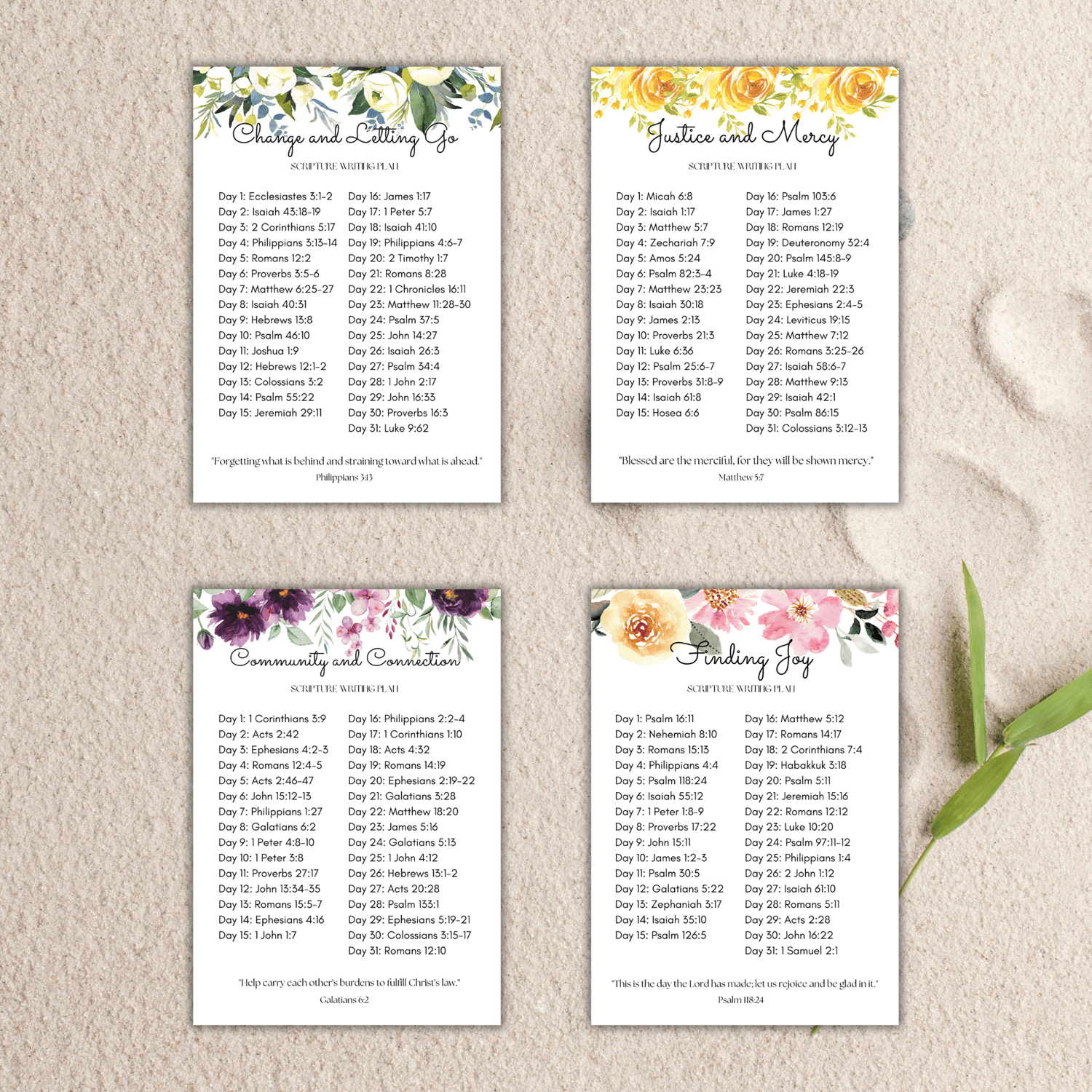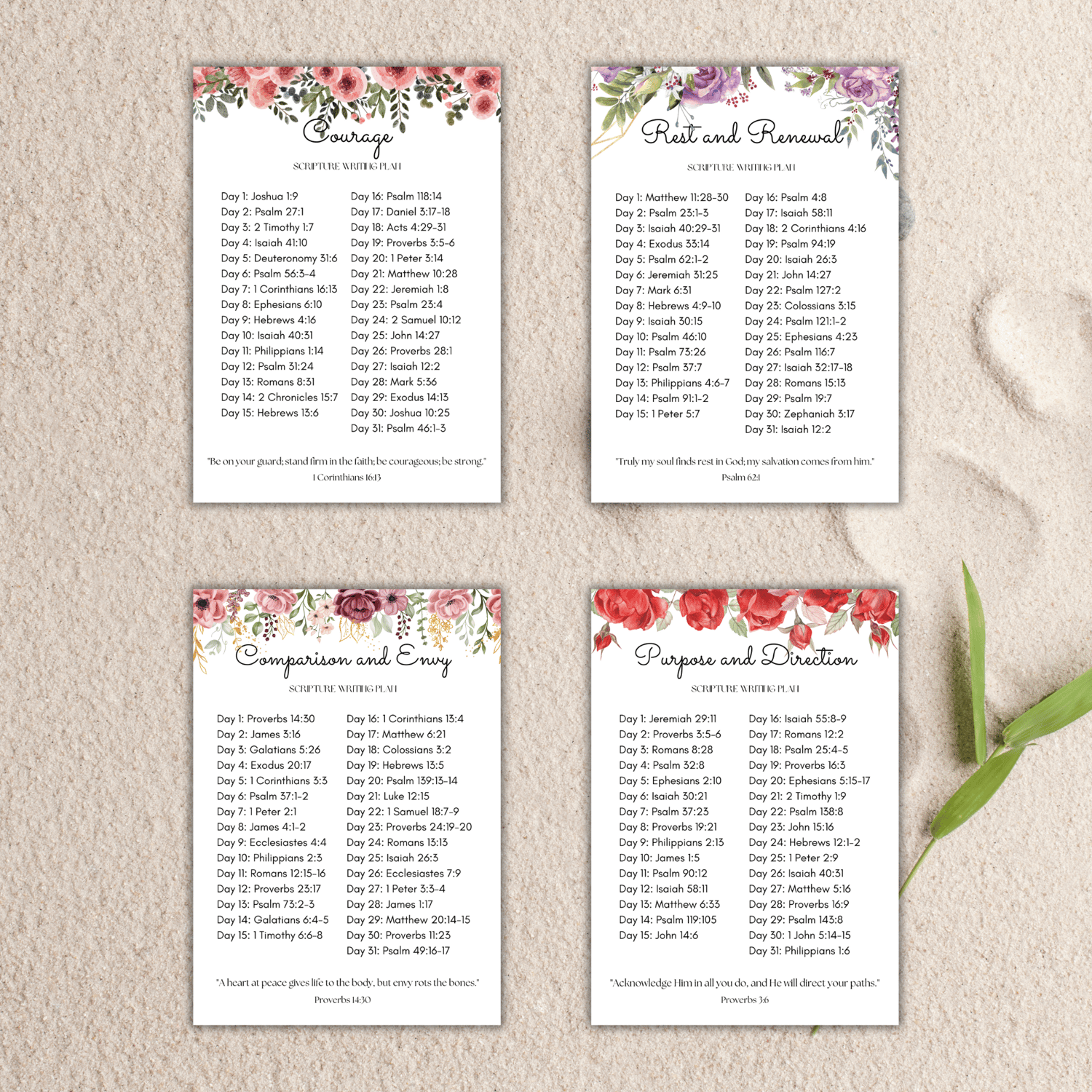 • Comprehensive Coverage: 12 distinct plans with 31 verses each, ensuring a month's worth of daily scripture writing.
